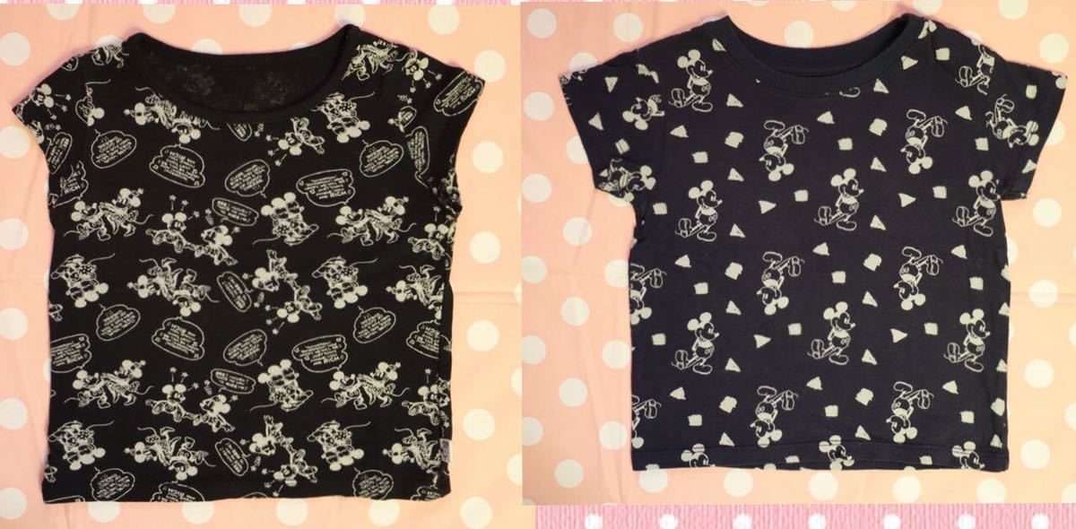 ネイビーに▲■ミッキー柄のTシャツのみ形が違います。