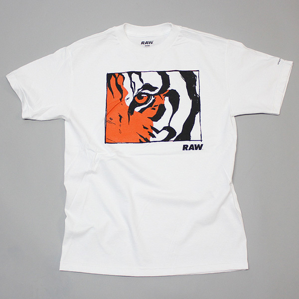 新品 RAW Jonah miller from Scratch Eye Tee ロウ Tシャツ メンズ ジョナミラータイガーコラボ 動物プリント ホワイト スケートボード 白