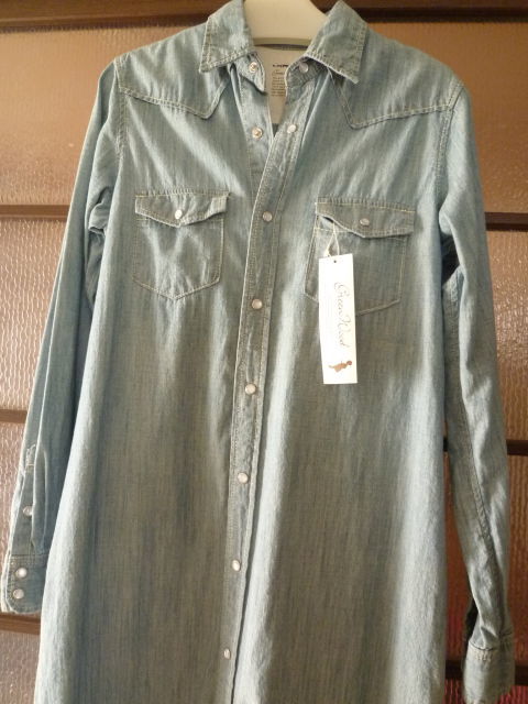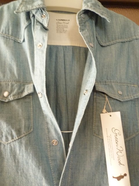 即決新品タグ付訳有デニムシャツワンピースgreenwoodウエスタンダンガリー綿100%コットンMグリーンウッド カイタック ロング丈コート羽織