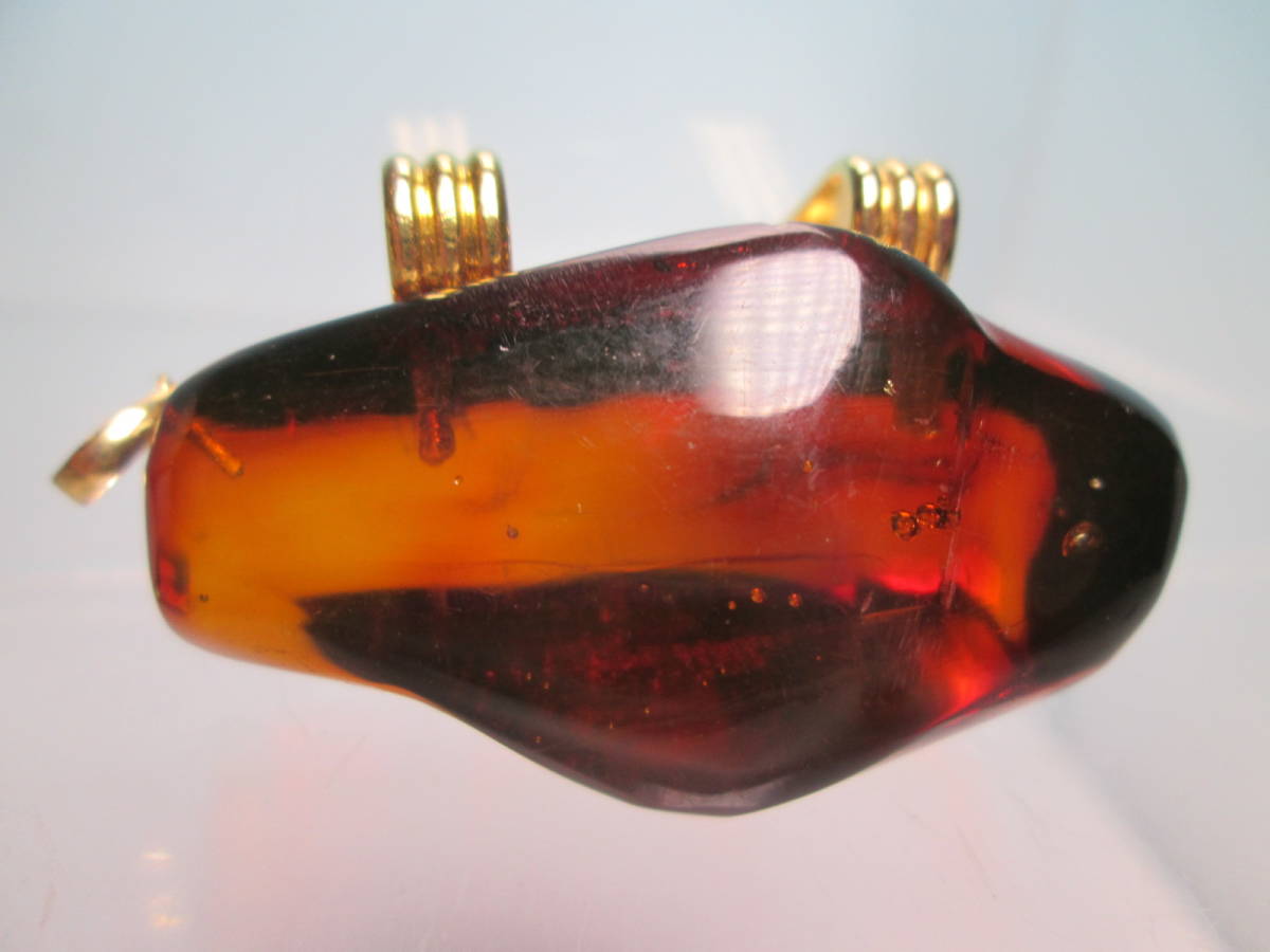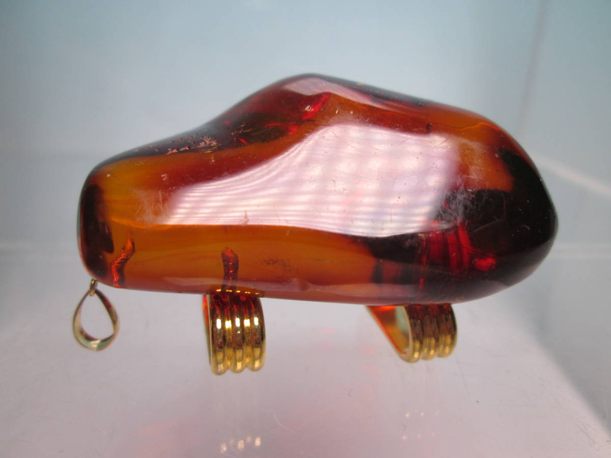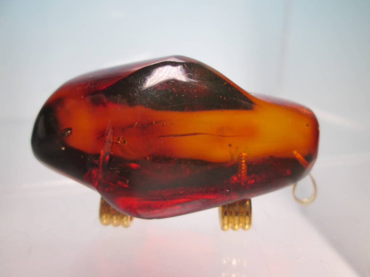 ☆K18 天然琥珀の大粒の帯留め兼ペンダント 18,17g