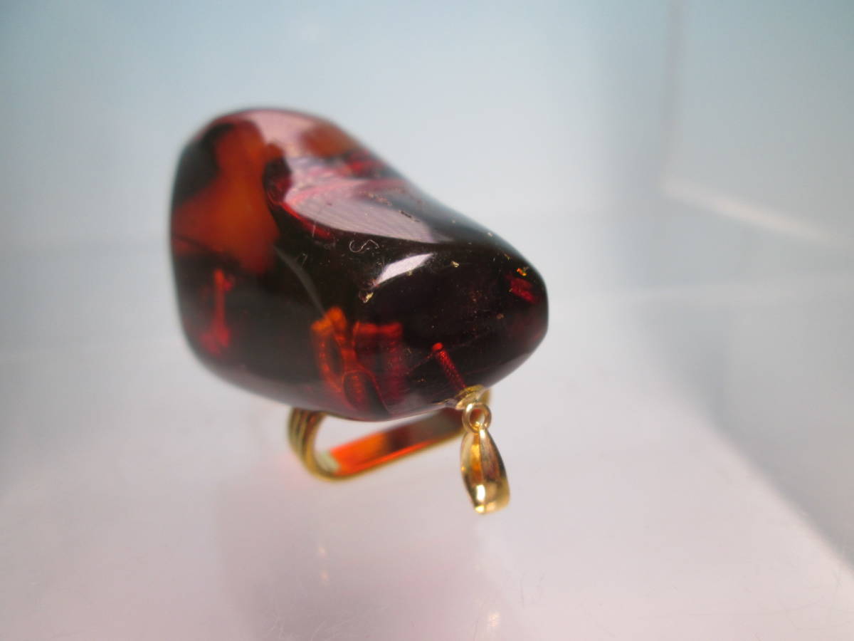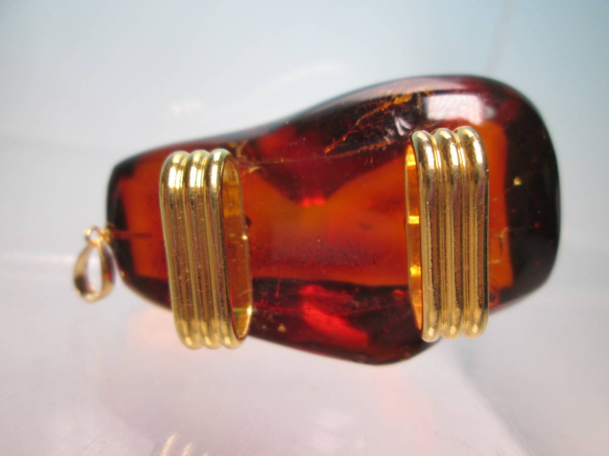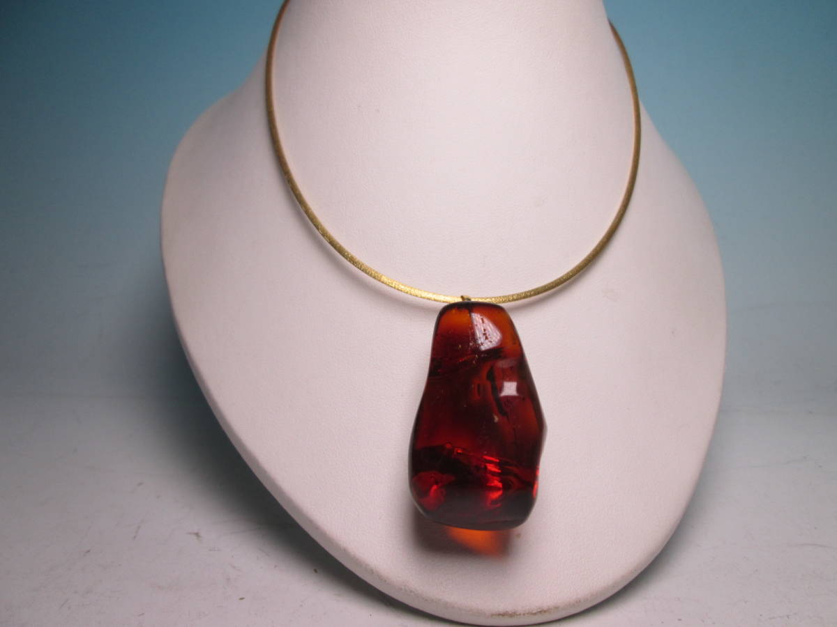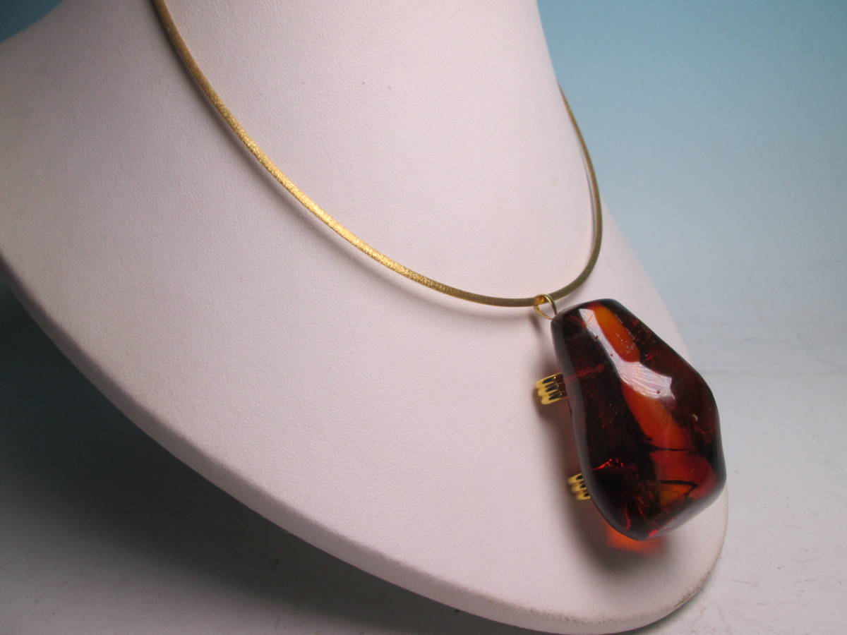 ☆K18 天然琥珀の大粒の帯留め兼ペンダント 18,17g