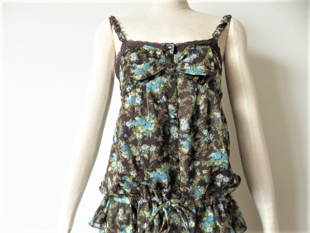 ■送料185円 新品同様 上質美品【OLIVE DE OLIVE】オリーブ デ オリーブ シフォン セットアップスーツ ブラウン 花柄 シフォンスーツ s177