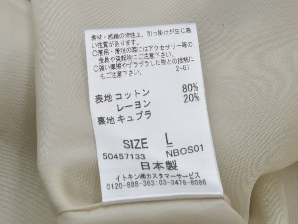 (表地)コットン80% レーヨン20% (裏地)キュプラ | |||||||||||||||||||