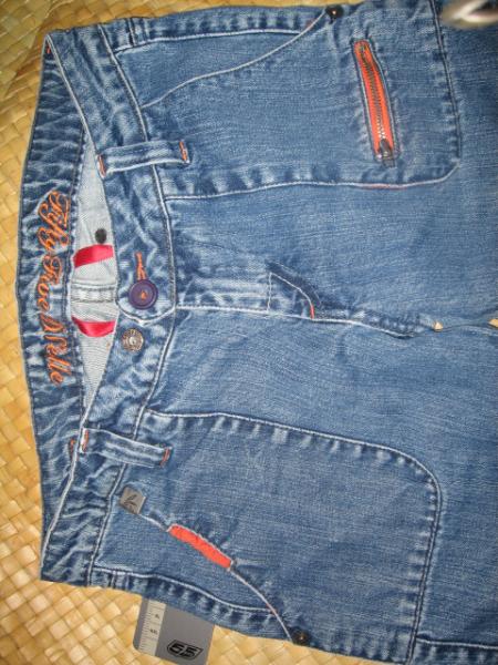 新品 サイズは25インチ 色はデニムカラー ダメージ加工 全長94cm股下77cm股上19cmです。内側ロゴ刺繍入り 切り替えラインがかわいいデニムです。購入価格は¥29800でした。