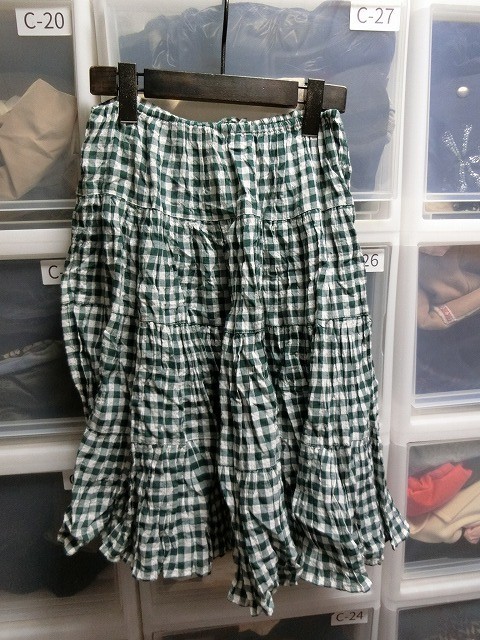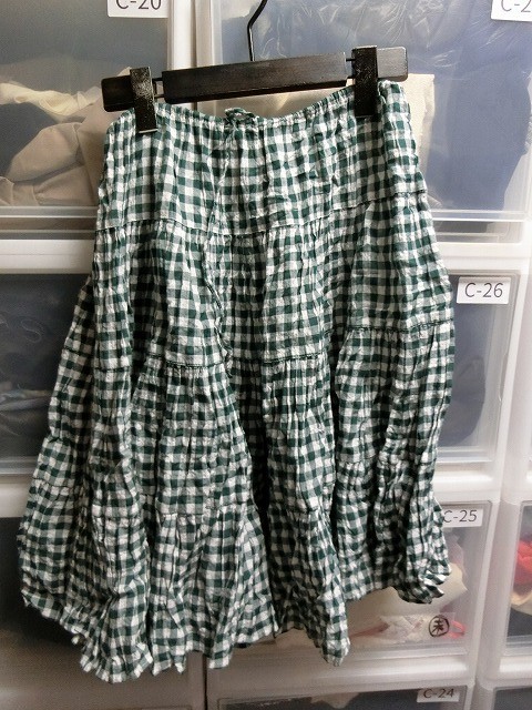 FREE'S ひざ下スカート チェック M グリーンxホワイト #083-220308 フリーズ