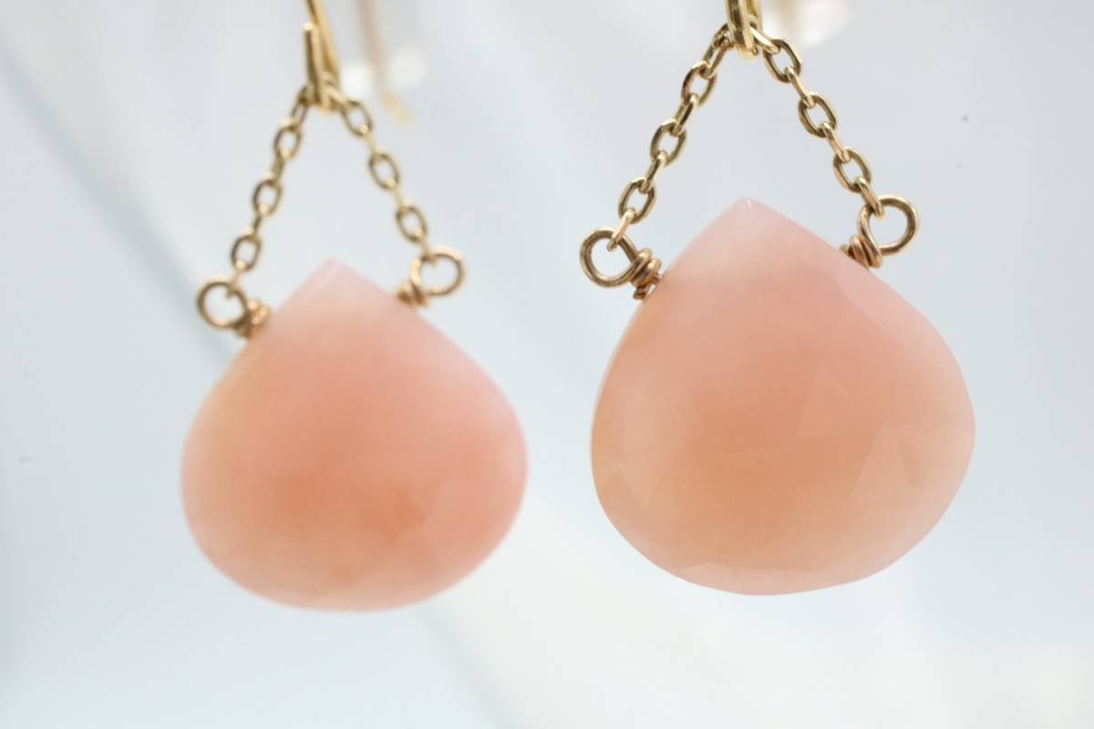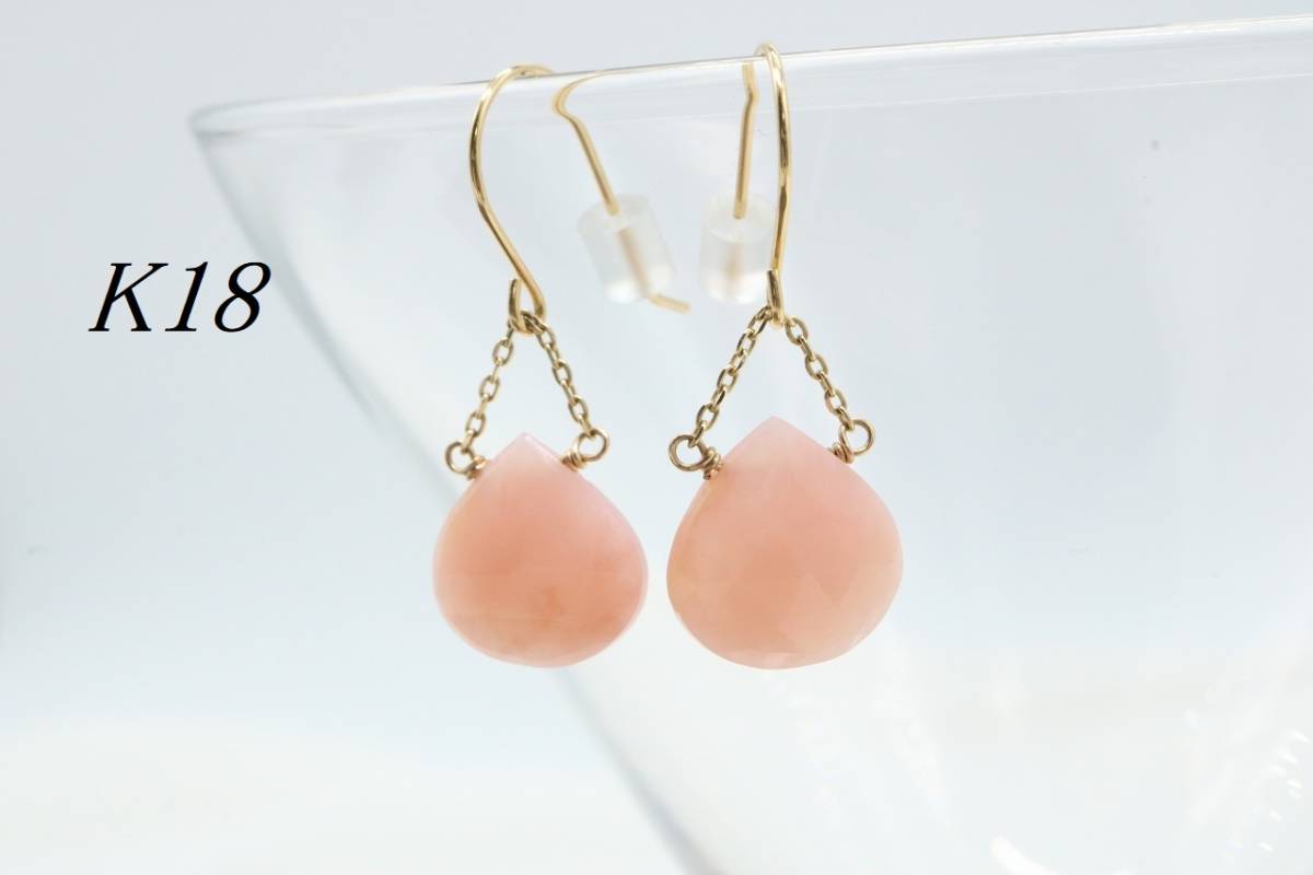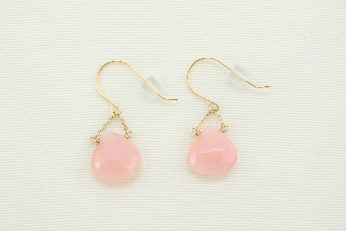 ■ 【T673】K18 ピンククオーツ ティアドロップ ピアス 揺れる 天然石【送料全国一律198円】