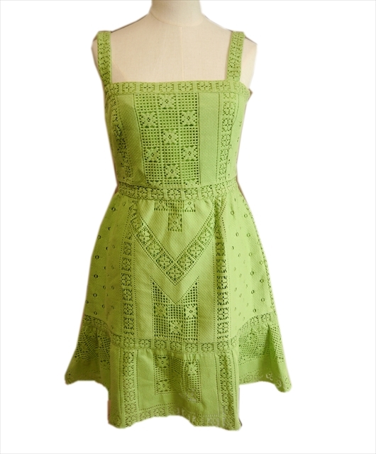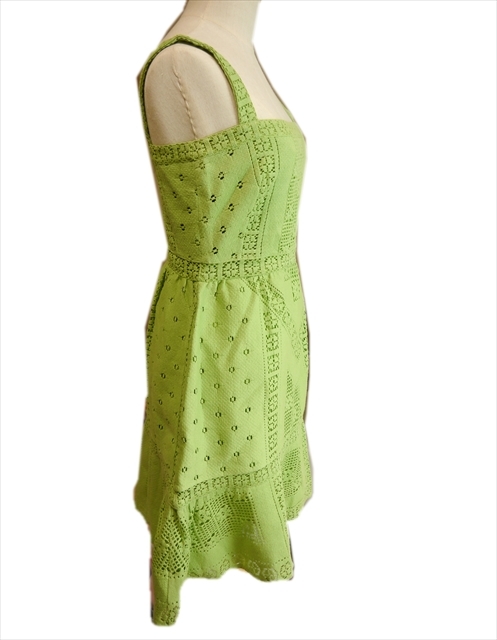 極上品 ヴァレンチノ ワンピース グリーン レース レディース 42 コットン ナイロン 本物鑑定済み