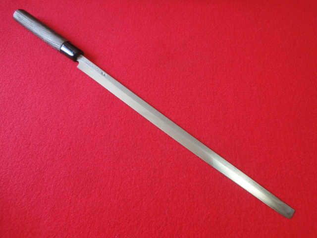 【東源正義】※本焼 刺身包丁 蛸引 刃渡32.3㎝ 全長48.3㎝ 峰厚2.8㎜ 片刃 ※中古品 ※全国一律送料1100円