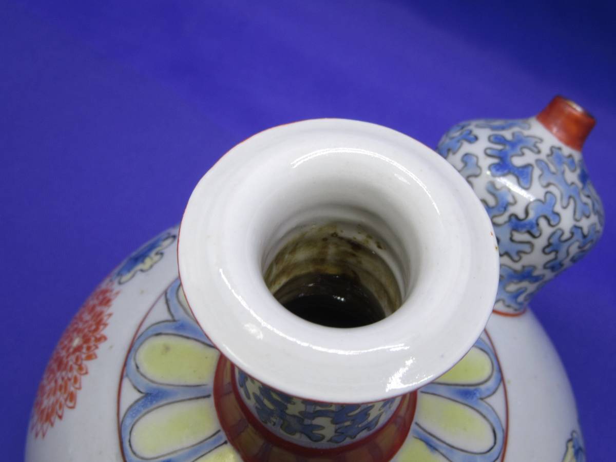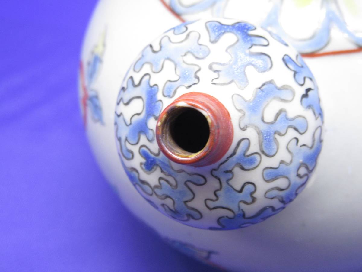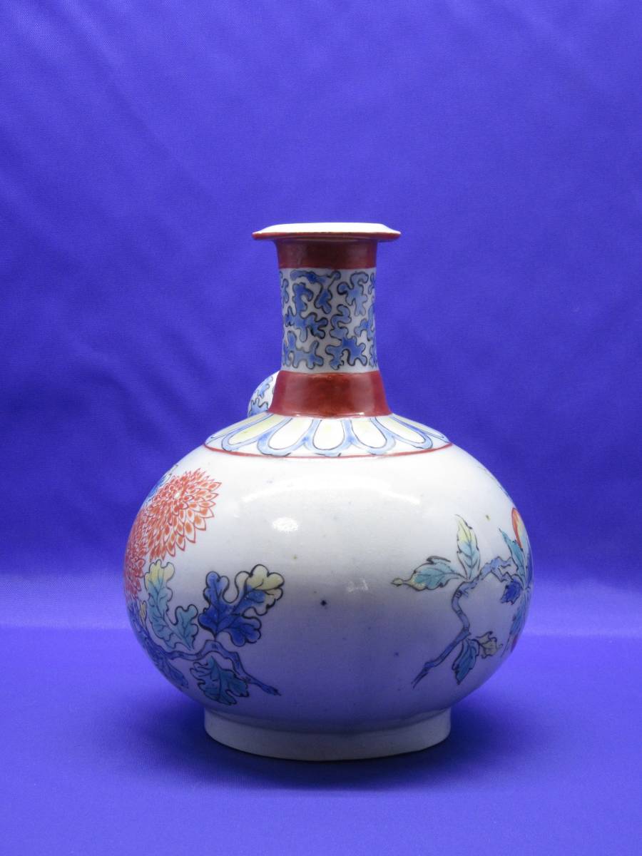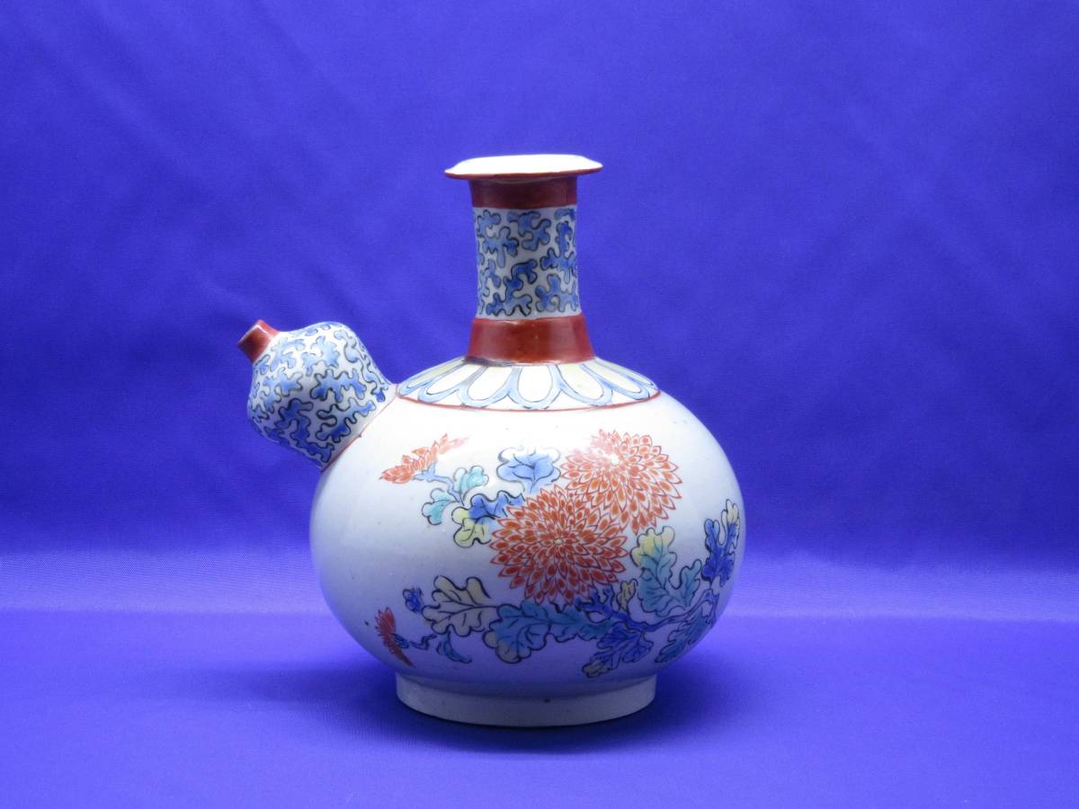 色絵の技法により描かれた花のデザインが美しく、なかなかお目にかかれない「色絵ケンディ型水柱」です。