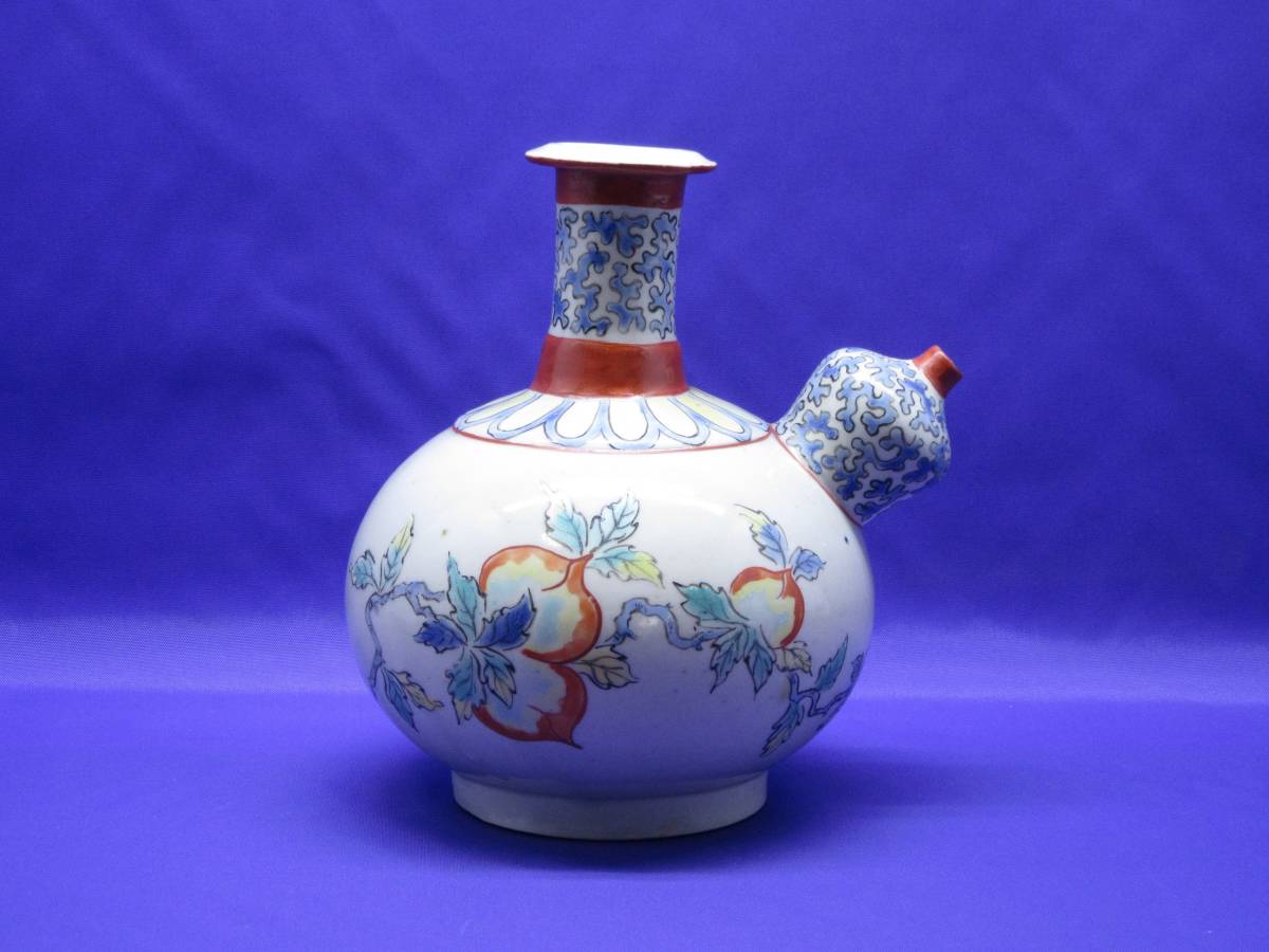 比較的流通している「染付ケンディ型水柱」とは異なり彩色豊かな色絵の技法が施された逸品となっております。