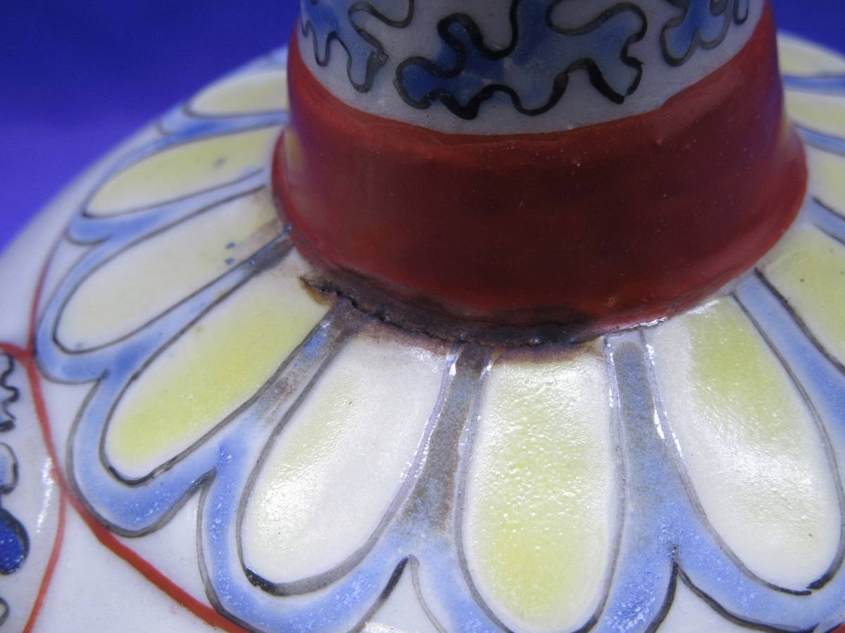 傷がございますが大変細やかにデザインが色絵の技法で施されており大変希少な逸品となっております。