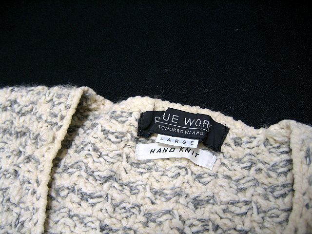 BLUE WORK TOMORROWLANDのHAND KNITシリーズのざっくりローゲージニットカーディガンです。 ざっくりとしたローゲージニットですので、保温性に優れています。 ミックスニットデザインがオシャレです。 お好きな方はこの機会に是非いかがでしょうか? (サイズ)L・肩幅61㎝ 脇下身幅67㎝ 裾身幅58㎝ 着丈64㎝ 袖丈63㎝ (素材)ウール63% コットン37% (カラー)オフホワイト×ライトグレー系 (商品状態)使用感があり、多少の系のホツレがあります。 |