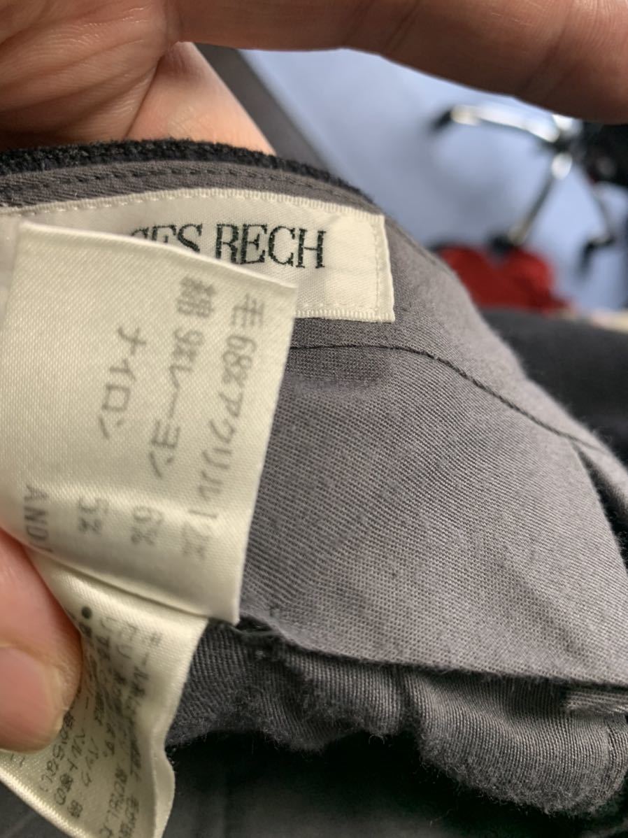 GEORGES RECHの秋冬物パンツです。ツータックで、サイズ はウエスト86股下80裾幅22センチ位です。カラーはダークグレーです。