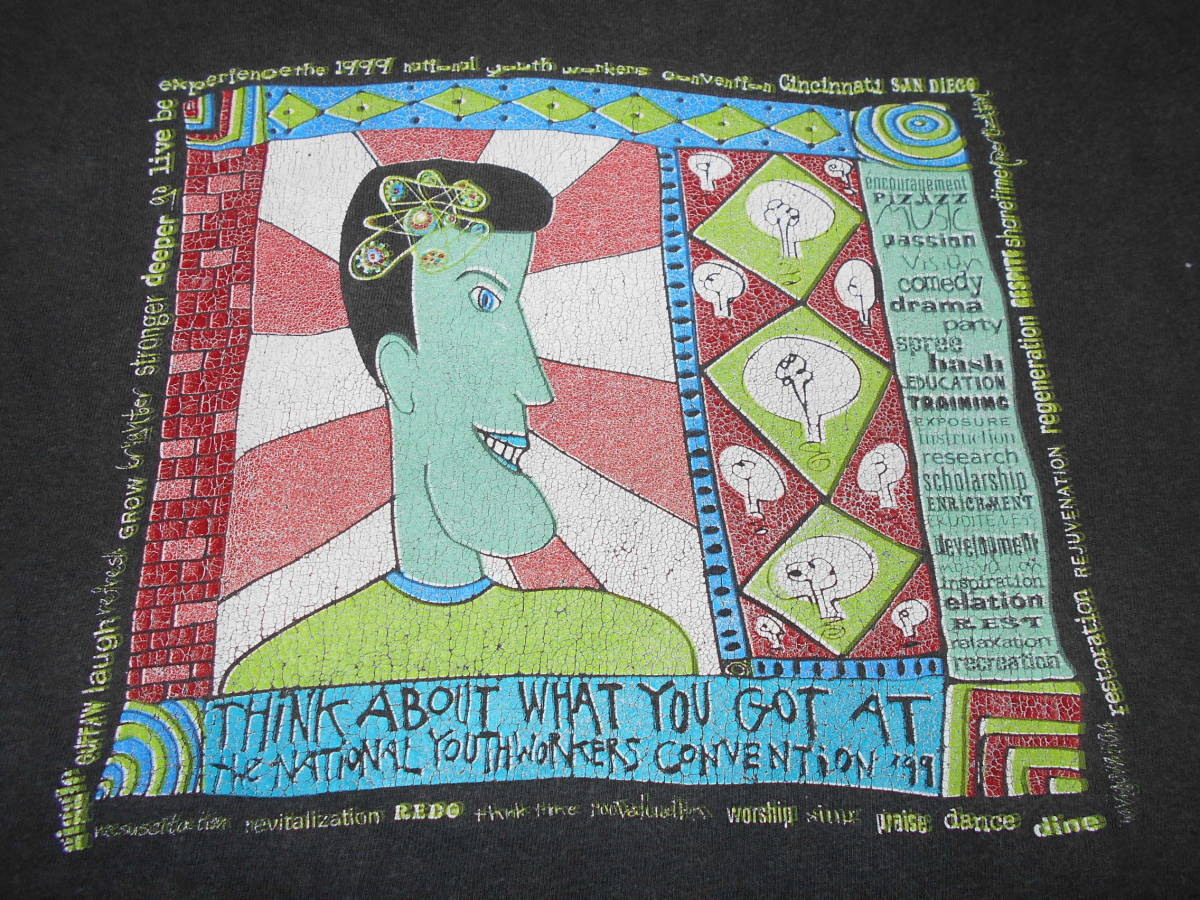 1990年製、ビンテージ オリジナル  HANES BEEFY Tシャツ MADE IN USA、西海岸カリフォルニア、サンディエゴ開催 「THE NATIONAL YOURTH WORKERS CONVENTION 1999’」 のイベントノベルティーTシャツ