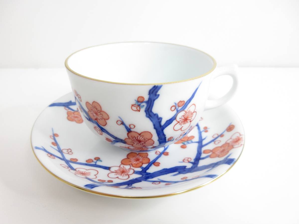 未使用品◆宮内庁御用達 十五代 辻常陸 十二ヶ月図 珈琲碗皿 梅 一月 辻家製品 禁裏御用窯元 管理2002 R-13