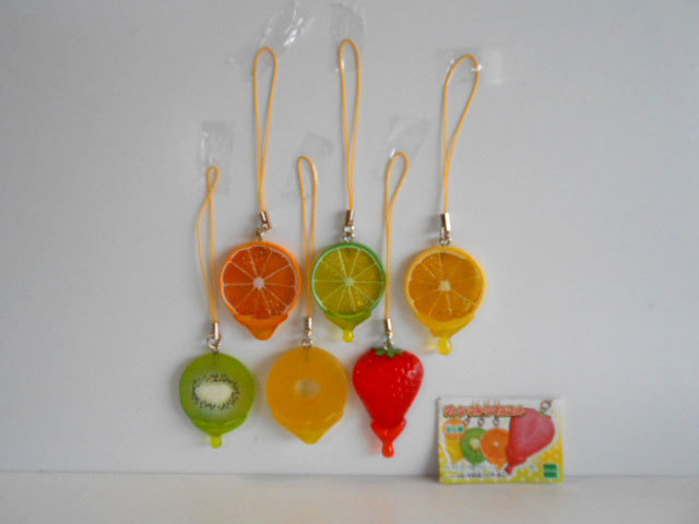 1.パイン 2.オレンジ 3.レモン 4.キウイ 5.ライム 6.ストロベリー ◇夏に向けて目にも涼しく 透明感が奇麗なマスコットです。 ※本商品は食べ物ではありません。 |