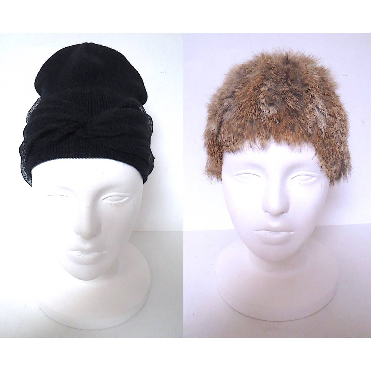 二点落札で送料無料! A2A17 AULA AILA アウラアイラ MOUSSY マウジー ニット帽 リアルファー 帽子 2点 レディース ブラック ブラウン