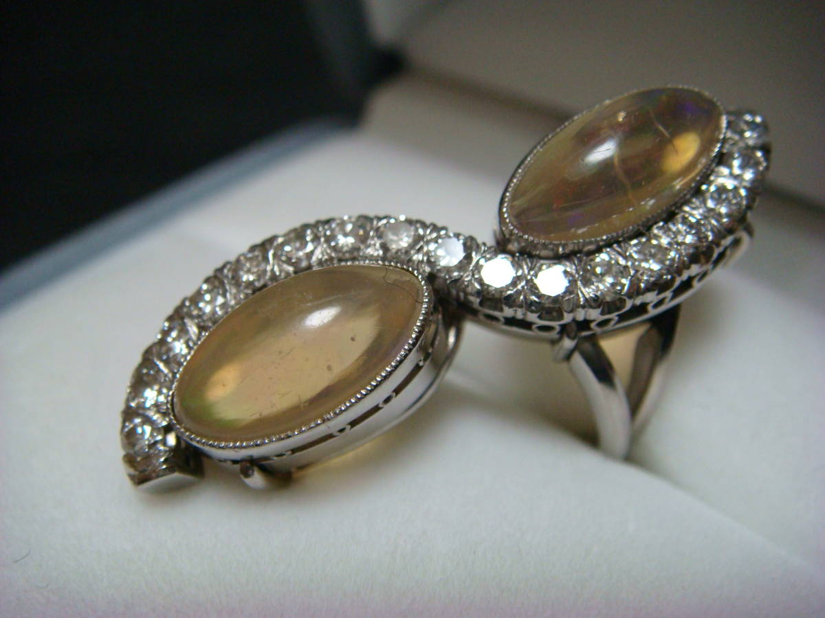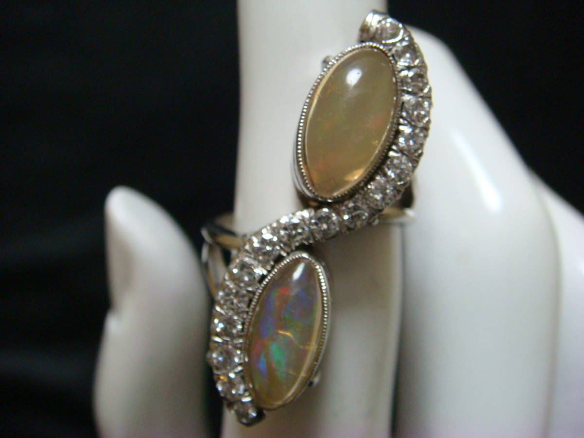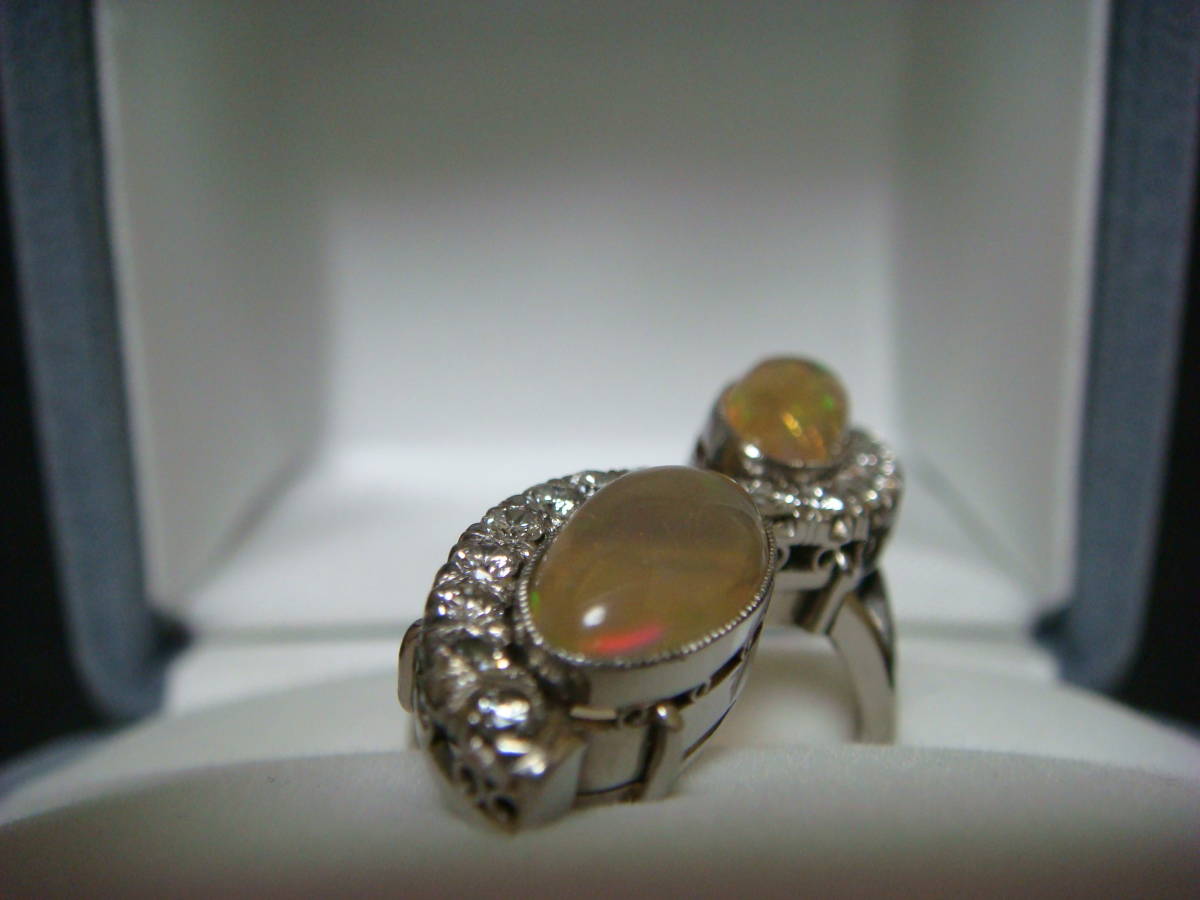 アンティークなオパールとダイヤモンドリングです。サイズは約7です。プラチナ製です。PMの刻印入り。