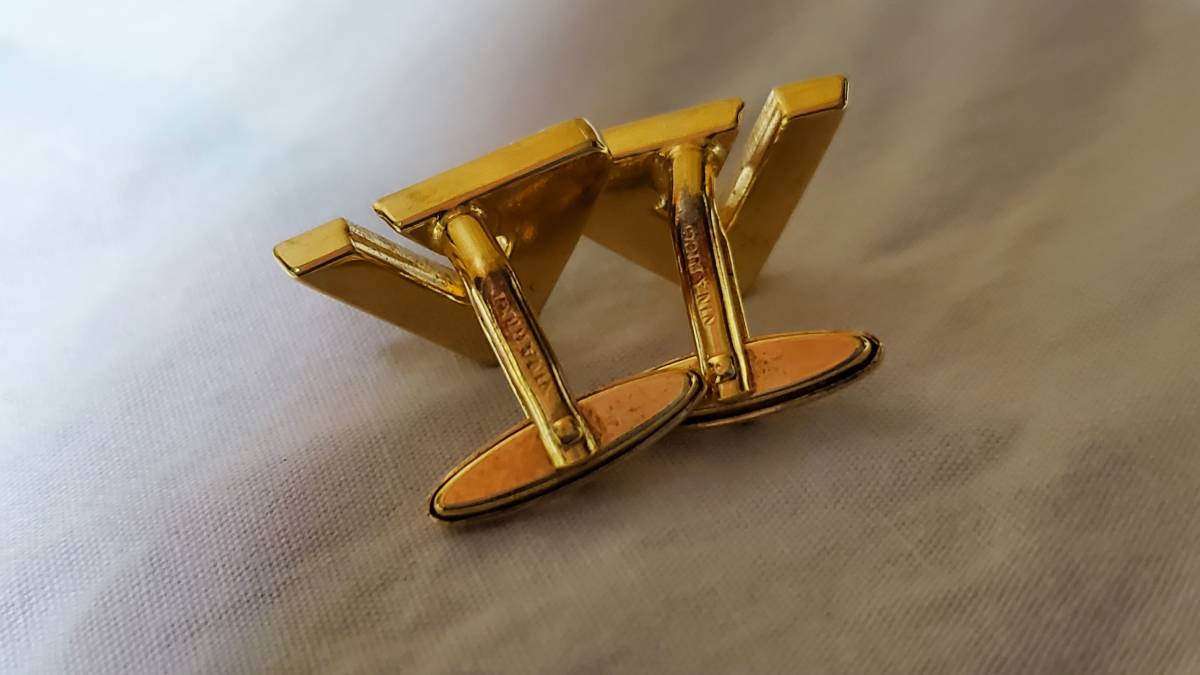 正規 レア Nina Ricciニナリッチ ラグジュアリー オープンスクエア トライアングルカフス ラージボタン ゴールドカフリンクス クラシック