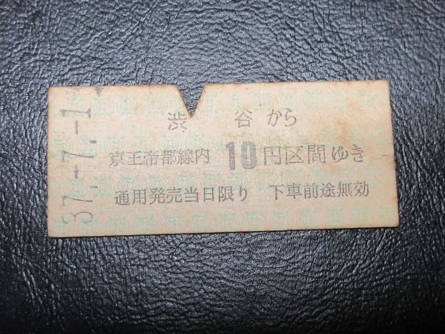 ~ ★国鉄乗車券・硬券『昭和37年7月1日「京王帝都電鉄」渋谷から京王帝都線内10円区間・乗車券』キップ切符・レアコレクション★JNR1792 ~