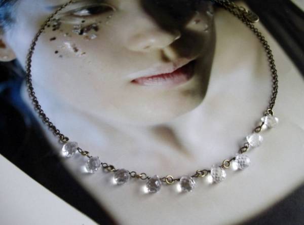 幻想・セレクション・・シリーズです♪星を紡いで・・神秘的な水晶のネックレスです♪9×6ミリのドロップカットの水晶はランダムに繋いで可憐な表情です♪長さは45センチ+アジャスター10センチで最長55センチ位です♪お揃いのネックレスやピアスも出品しています♪ハンドメイドをご理解頂いてノークレーム、ノーリターンでお願いします