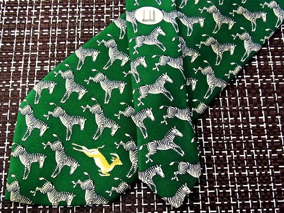☆状態並N☆2790■ダンヒル【dunhill】~シマウマ縞馬・鹿・ゼブラ~ネクタイ♪