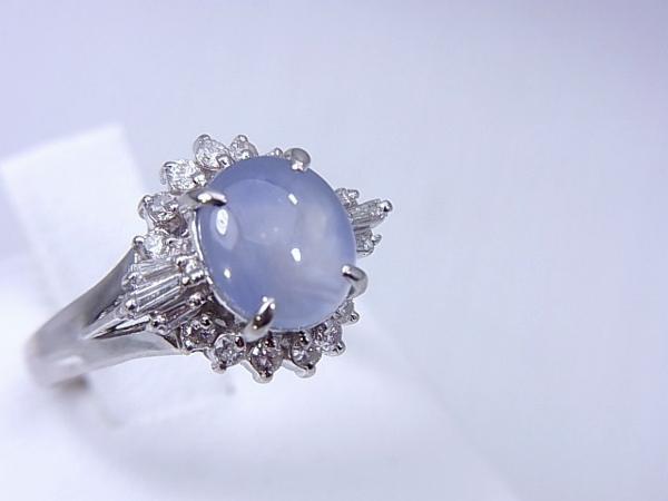 当店の商品は全て鑑定済みのお品です。 ご安心してお取引下さい。 A80 オーバルカボションカット 非加熱、ブルーサファイヤには 6方向に光の筋が現れ、 綺麗なスター効果を示しています。 藤色の気品ある彩りに スター効果が浮かびあがり、神秘的です。 スターサファイヤの周りに 合計0.33ctのダイヤモンドをセットした、 気品溢れる素敵なデザインのリングです。 中央宝石研究所にてソーティング済のお品。 ◆サイズ◆ 9号 ◆リング幅◆ 2.2~3mm ◆デザインサイズ◆ 横14.5×縦11mm ◆サファイヤサイズ◆ 横7.5×縦8.5mm ◆総重量◆ 5.4g ◆刻印◆ Pt900.4.12・0.32 ◆素材◆ プラチナ・ブルースターサファイヤ・ダイヤ ◆参考価格◆ ◆付属品◆ ケース ◆ランク◆ S新品仕上げ済 職人が丁寧に新品仕上げをしたお品です。 新品同様に綺麗なお品です。 商品ステータスは画像でご確認下さい。 一度は人手に渡りましたお品です。 完璧なお品をお探しの方、細かな所をお気にされる方は ご入札をお控えください。 | ||