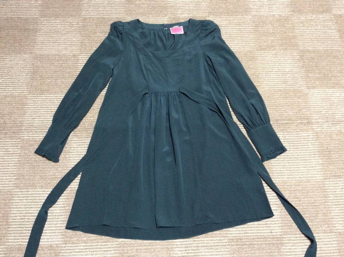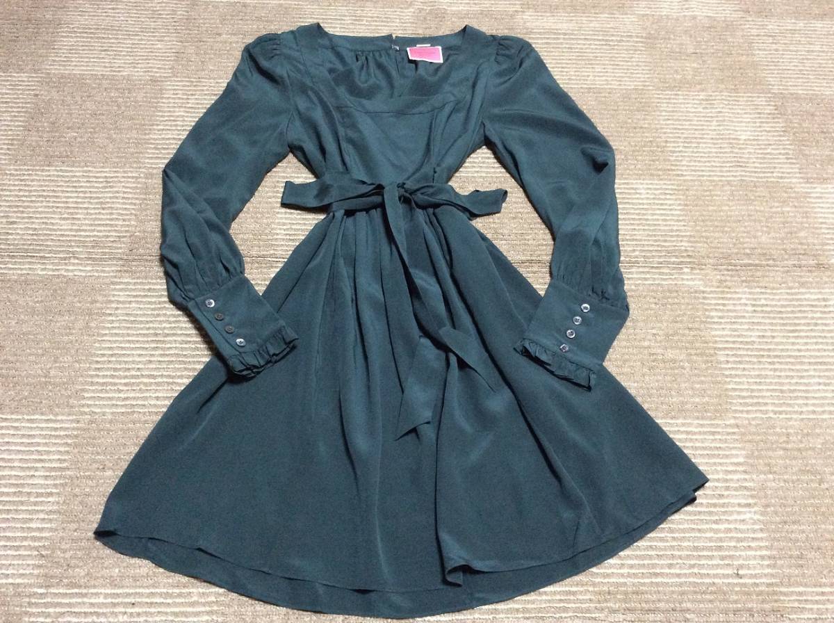 新品 送料無料 US4号 165/88A ケイトスペード ニューヨークKate Spade NewYork シルクワンピース ダークグリーン