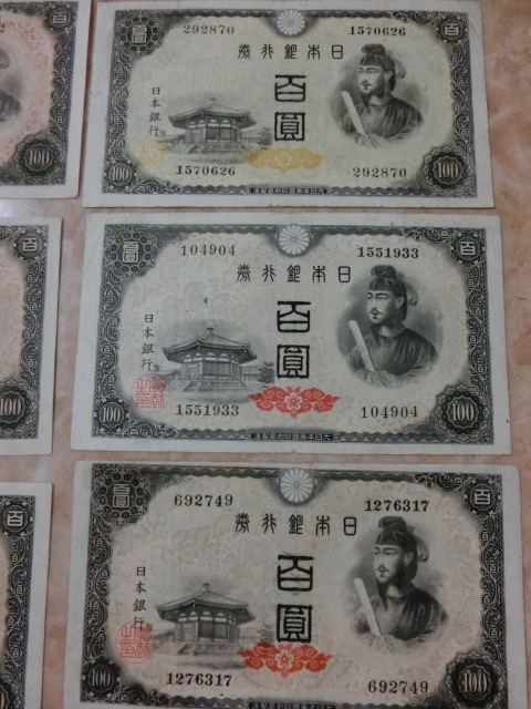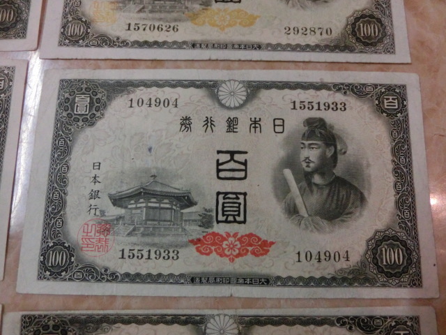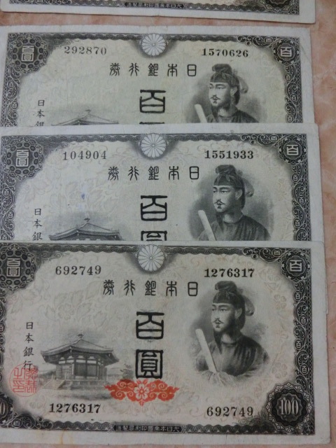 日本銀行券A号100円 4次100円全印刷工場12工場セットです。