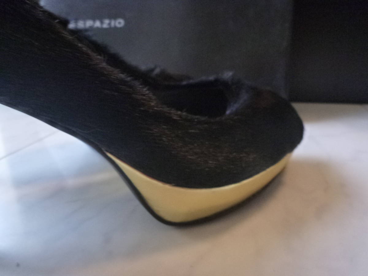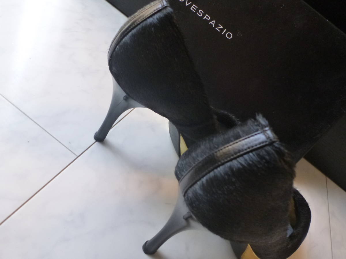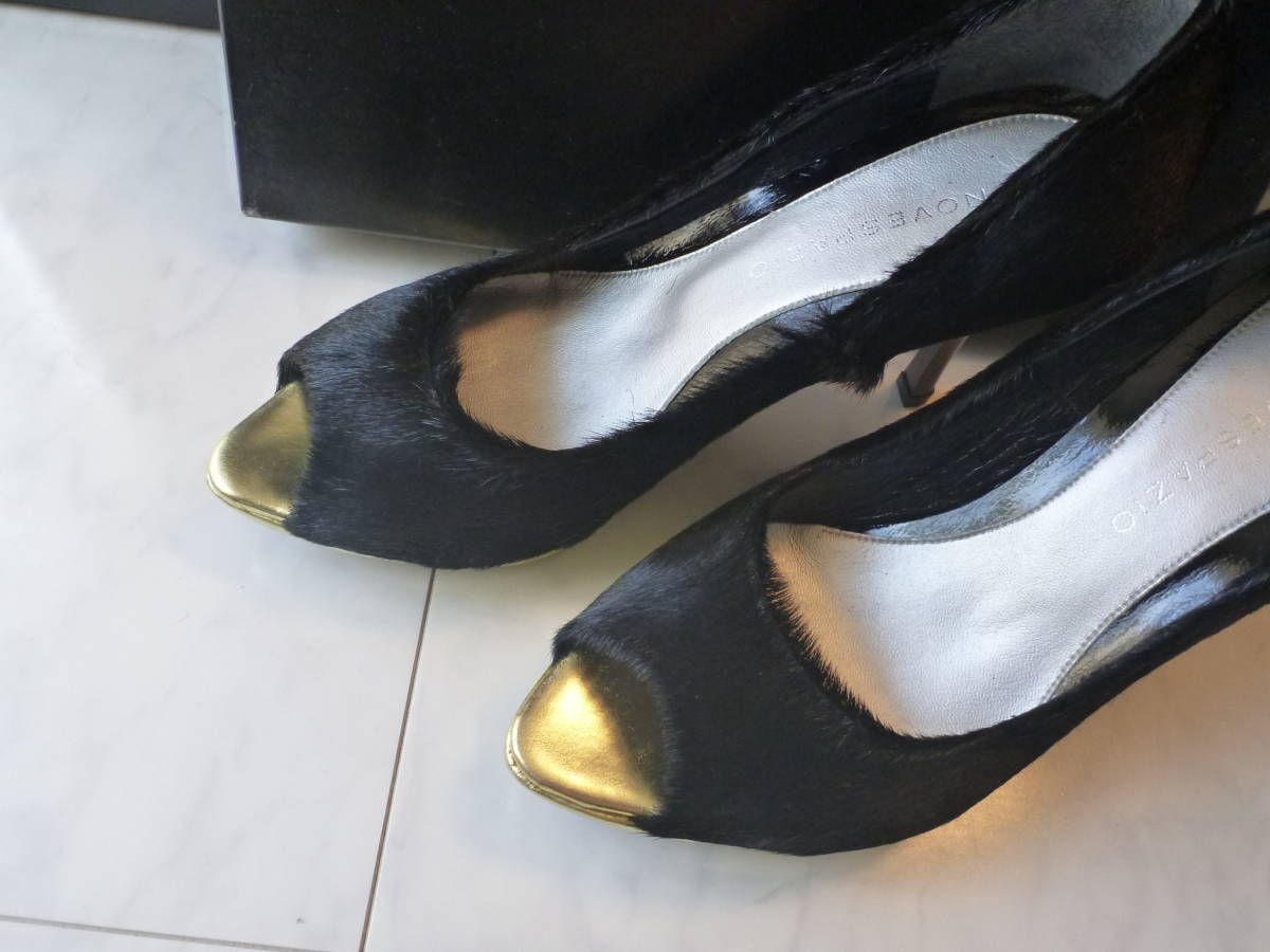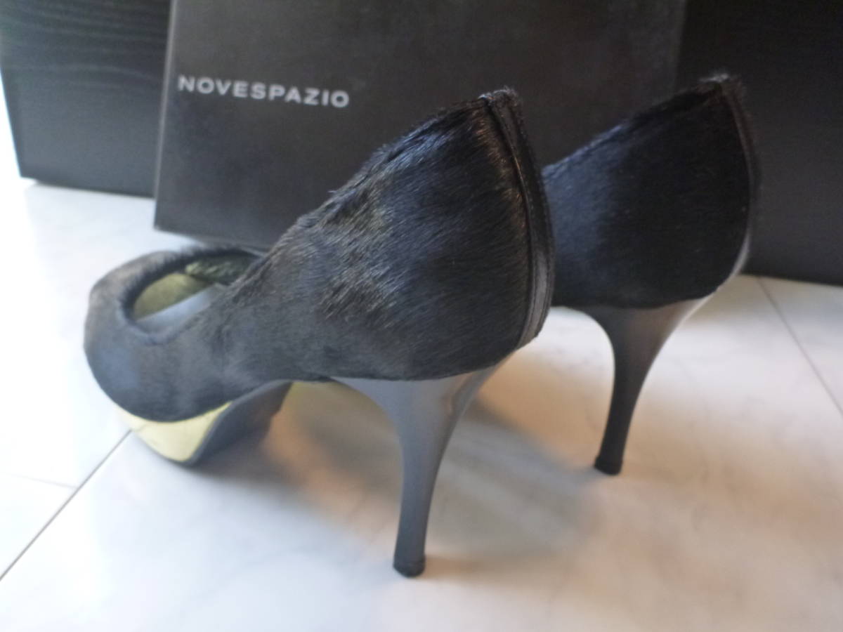 3万 新品 NOVESPAZIO ノーベスパジオ ★高級ハラコ 黒×ゴールド オープントゥパンプス 23