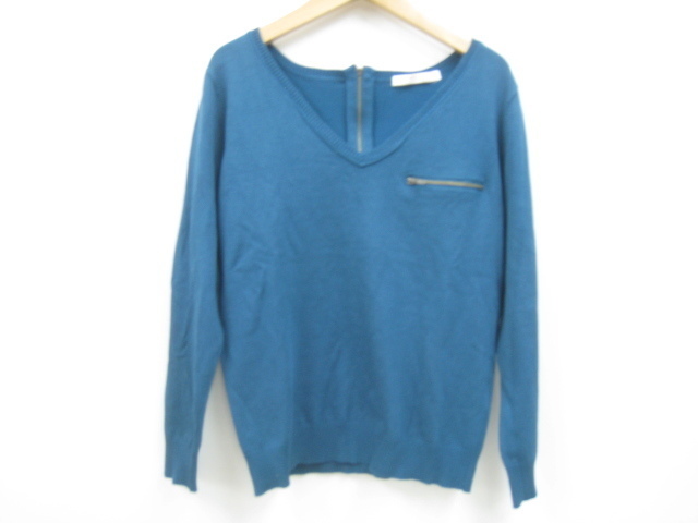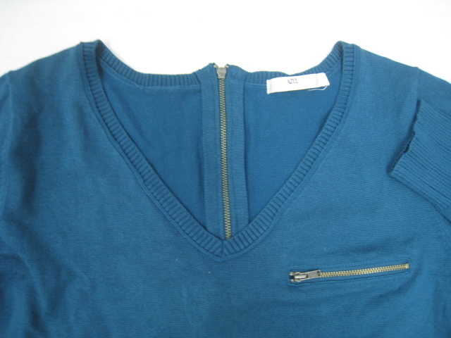 AZUL basic アズール ベーシック シルキーデオ天竺ロールZIP ジップ 長袖 Vネック プルオーバー ニット グリーン系 青緑 Mサイズ