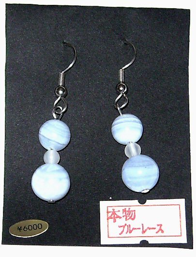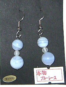 ブルーレース・天然石×スモーキーストーン★ピアス★未使用