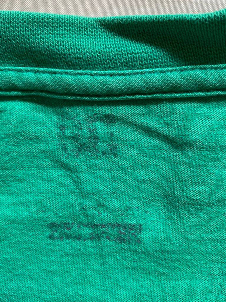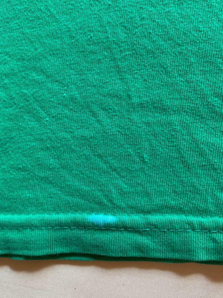 素人採寸ですので、多少の誤差が生じる事をご了承下さい。着丈約62cm・肩幅約48cm・袖丈約17.5cm・身幅約48cmです。新品ではございませんが、古着にご理解ある方でしたら 問題ないレベルです。裾部分に色褪せがございますので神経質な方の入札はご遠慮下さい。確認はしているのですが、写真撮影時、シミ・汚れ・ほつれ・小穴等見落とす事がありますのでご理解下さい。個人出品ですのでノークレーム・ノーリターンで宜しくお願い致します。