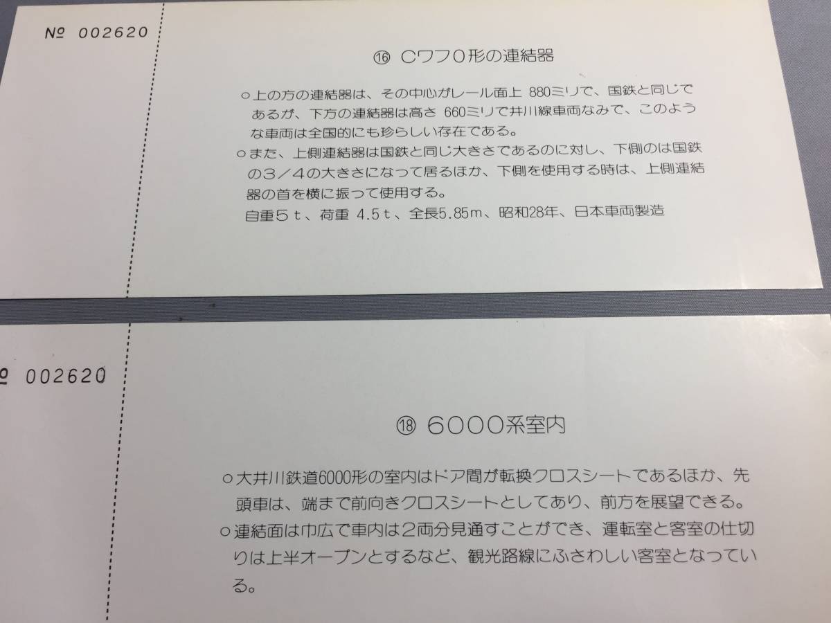 大井川鉄道 昭和52年10月1日 大井川鉄道車両シリーズ 記念乗車券 No.3 未使用乗車券6枚 【Y02-1541】