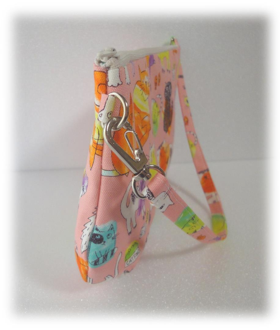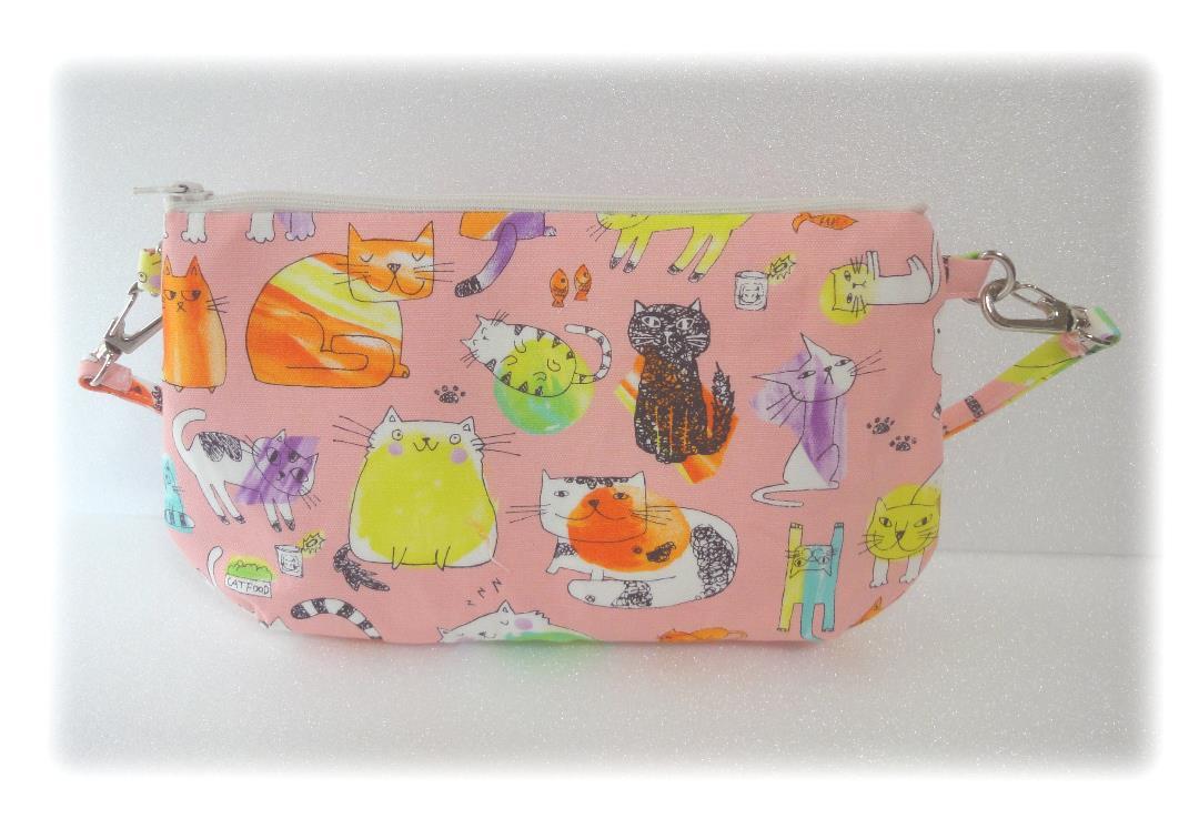 ハンドメイド かわいいねこちゃん柄のストラップ付ポーチ