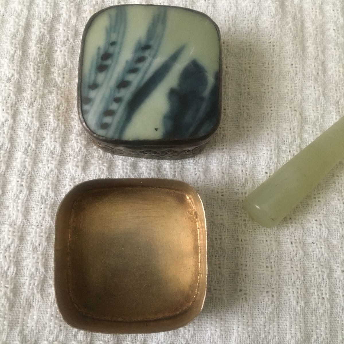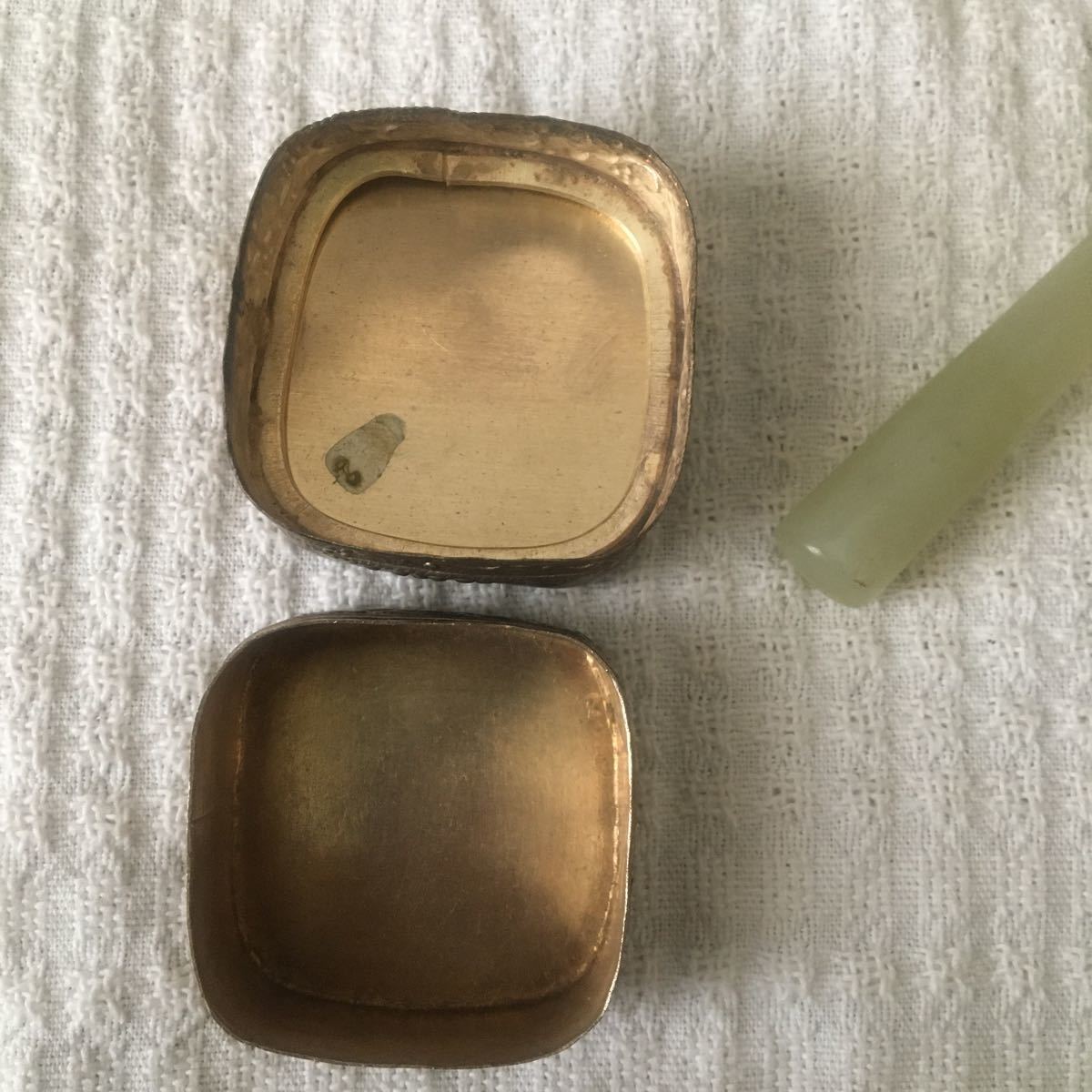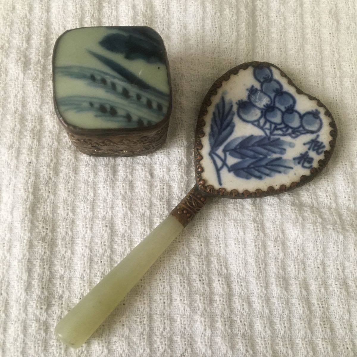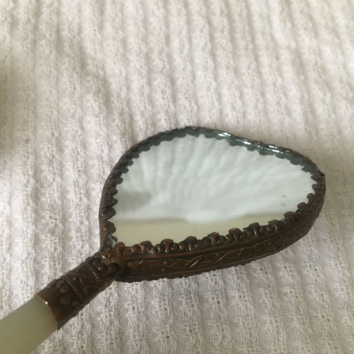 手鏡は13cmくらい。小物入れ4cm×4cm×3cm。