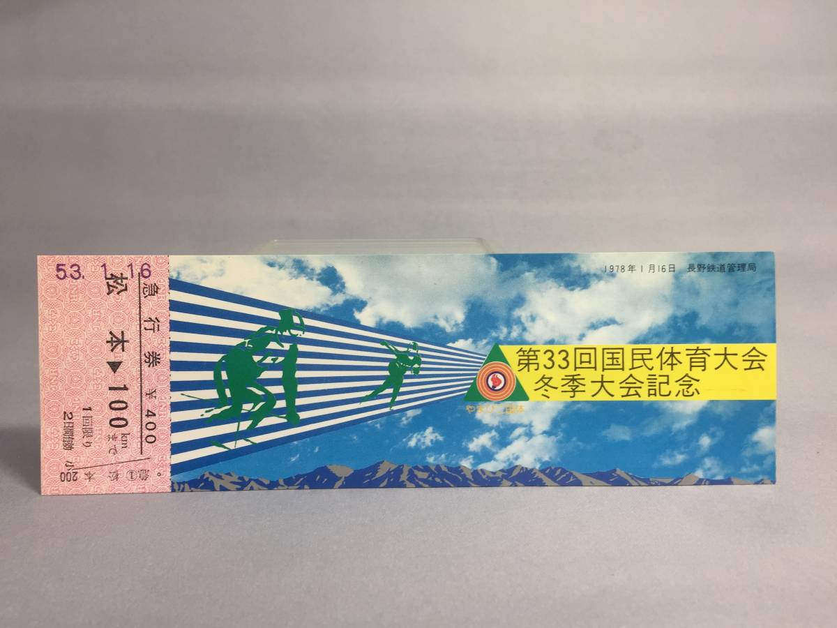 国鉄・長野鉄道管理局 昭和53年1月16日 第33回国民体育大会冬季大会記念 急行券1枚 【K13-5384-1】