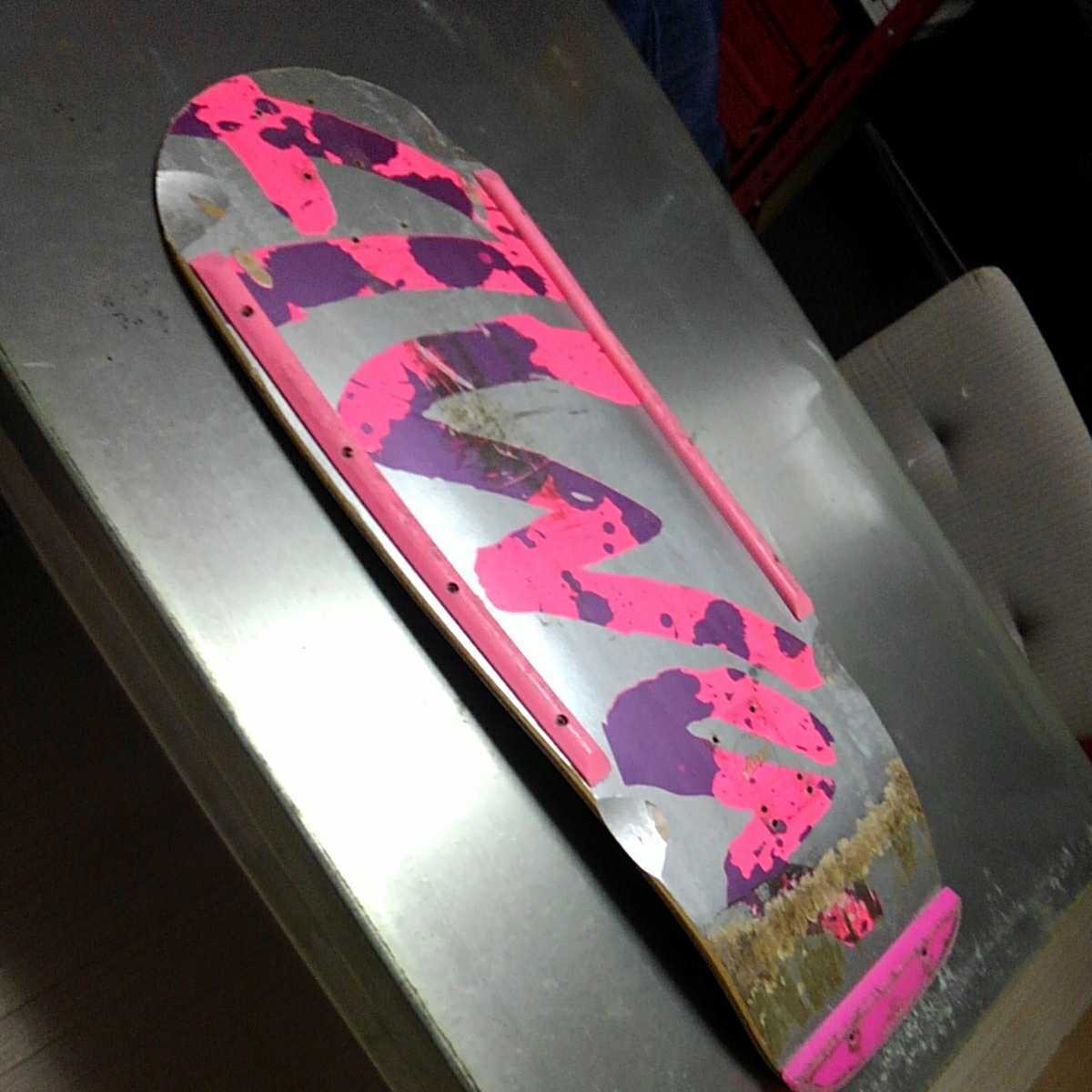 まだまだ使用可能なトニーアルバのデッキです。コンケーブル入りのシングルキックになります。サイズ約760×270ミリ位のワイドです。テールガードやレールなどの保護パーツは、昔ながらの両留め仕様です。スケボー関係多数出品中です。