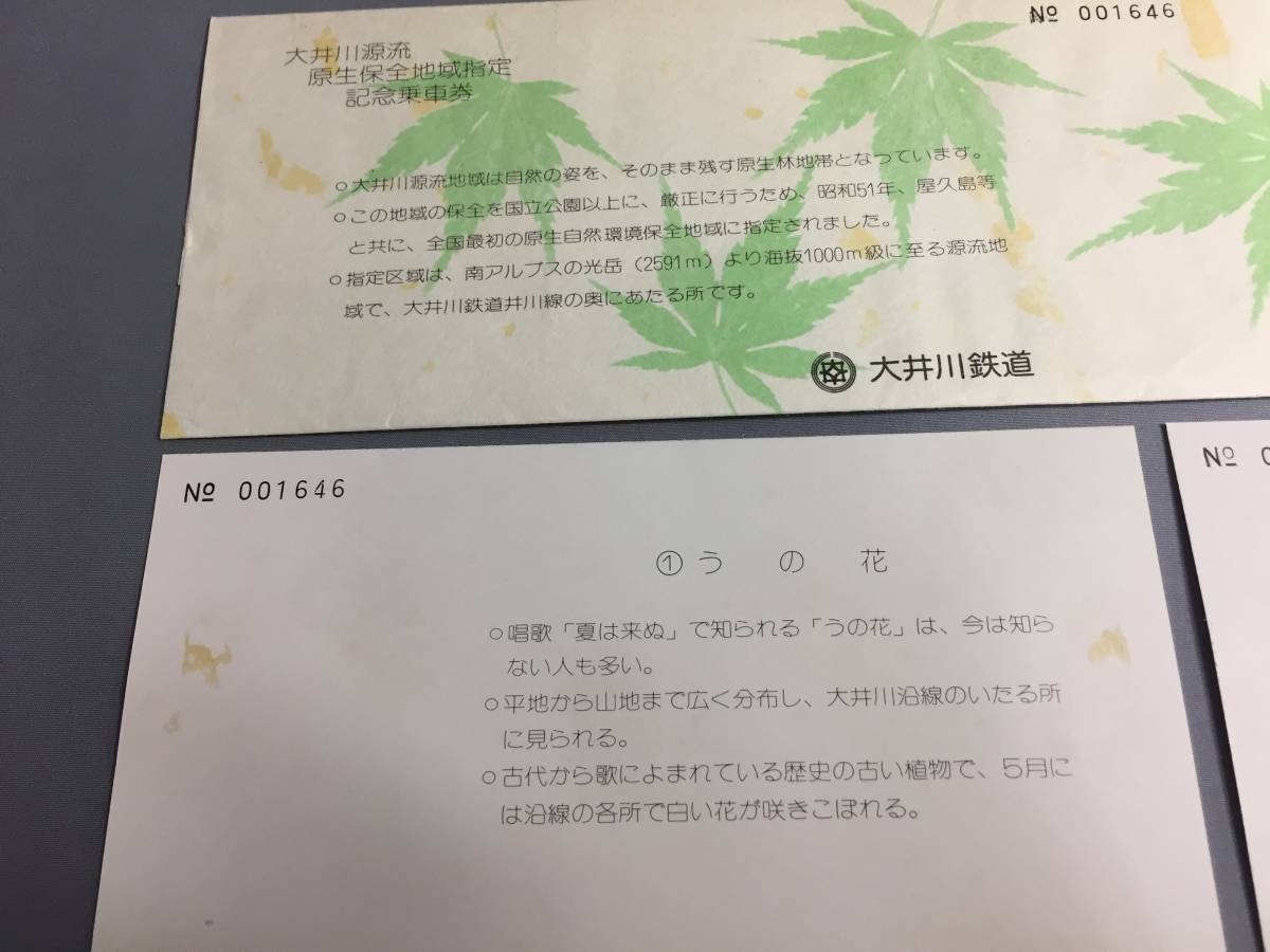 大井川鉄道 昭和51年12月15日 大井川源流原生保全地域指定記念乗車券 未使用乗車券6枚 【Y02-1548】