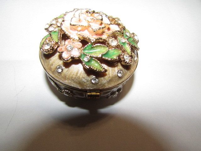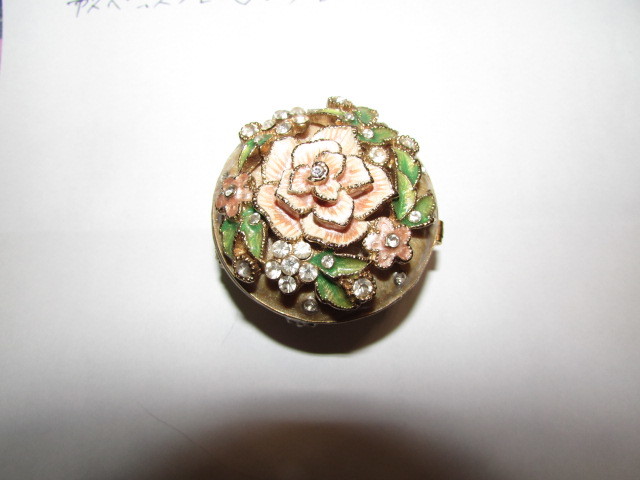 (着物屋・蔵出し)(アンティ-ク・エナメル薔薇模様小物入れ)昭和レトロ