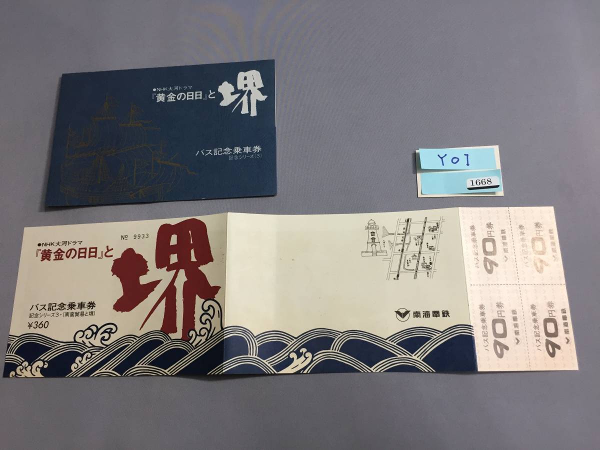 南海鉄道 NHK大河ドラマ「黄金の日々」と堺 バス記念乗車券 記念シリーズ(3)バス乗車券4枚【Y01-1668】