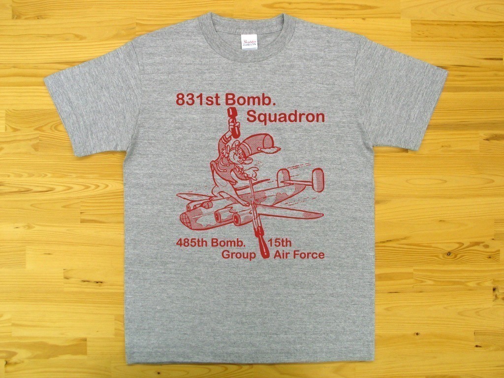第831爆撃飛行隊 杢グレー 5.6oz 半袖Tシャツ 赤 S ミリタリー ねずみ U.S. AIR FORCE