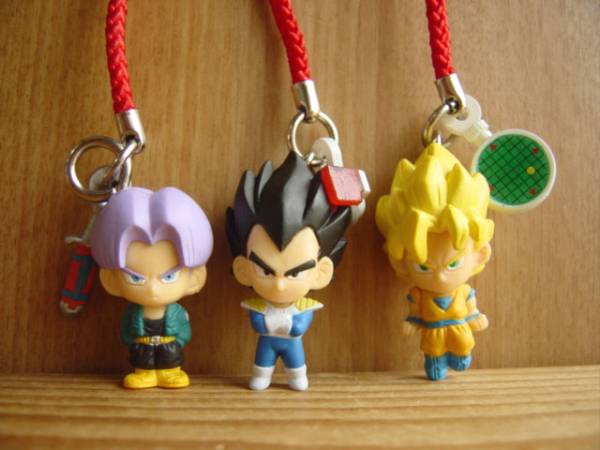 1.超サイヤ人悟空+ドラゴンレーダー 2.ベジータ+スカウター 3.トランクス+剣 4.ピッコロ+宇宙船 5.魔人ブウ+ダーブラクッキー 6.カリン様+仙豆壷 |