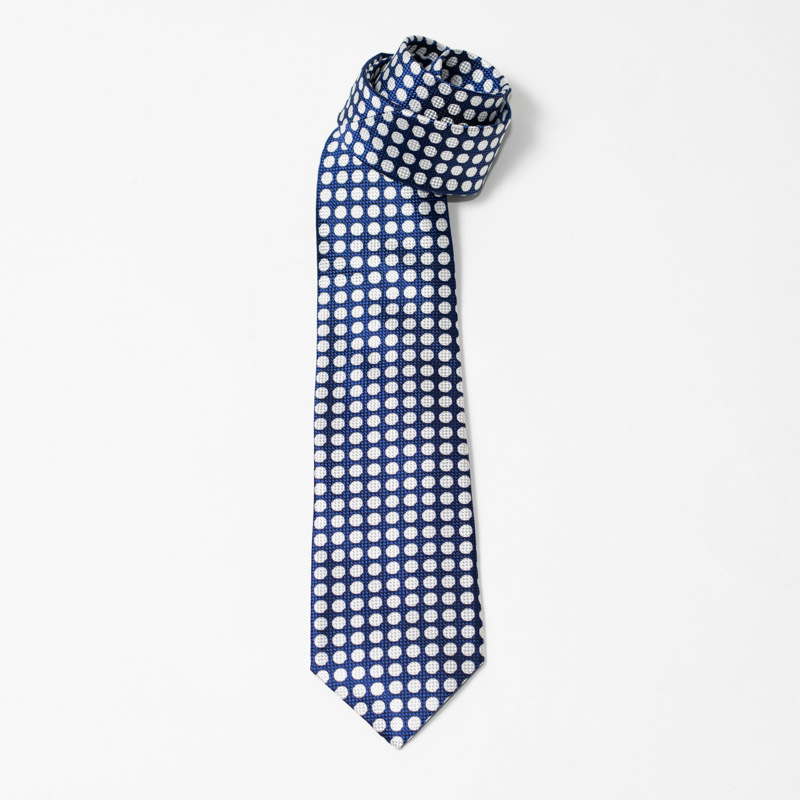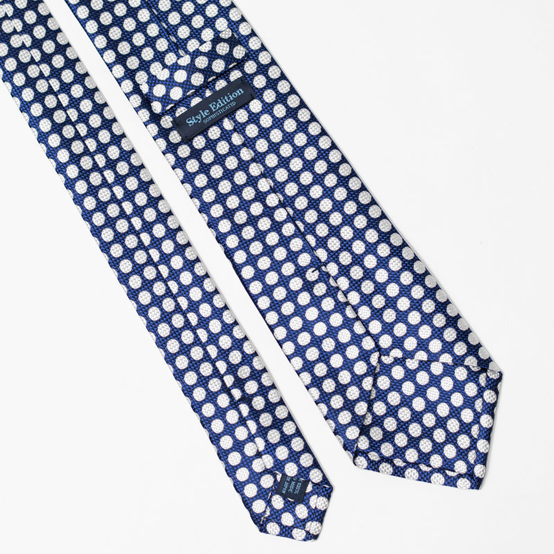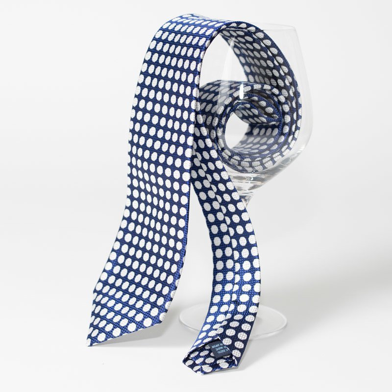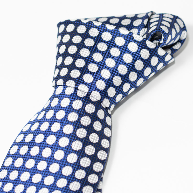 イタリー素材 シルク100% ハンドメイド ネイビー×グレー ドット柄 ネクタイ 8cm幅 日本製