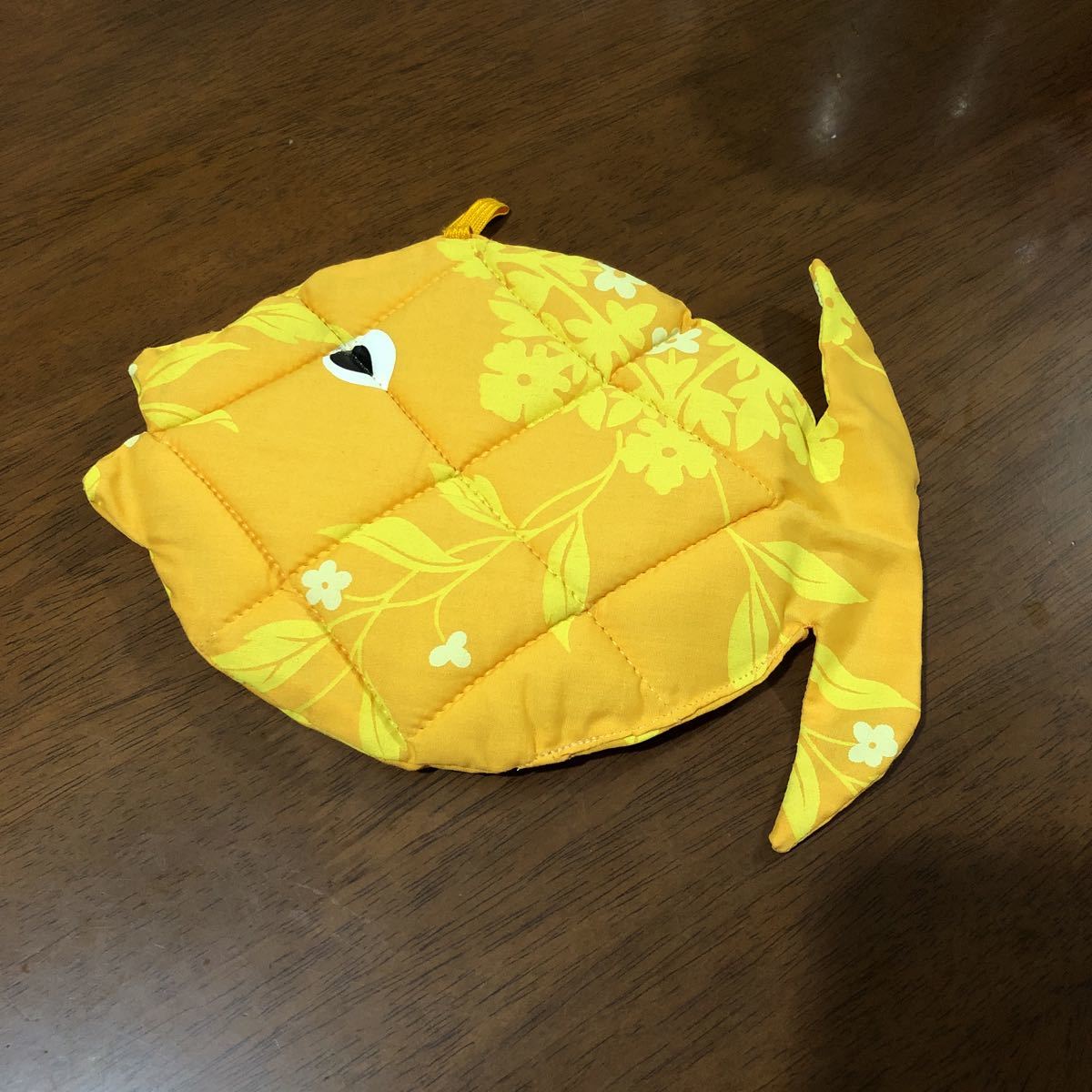 黄色ハワイアンミトン魚型鍋つかみ新品未使用品LANAKILA Craftsラナキラクラフトハンドメイド 花柄