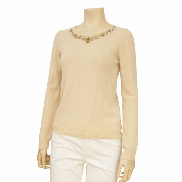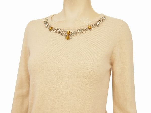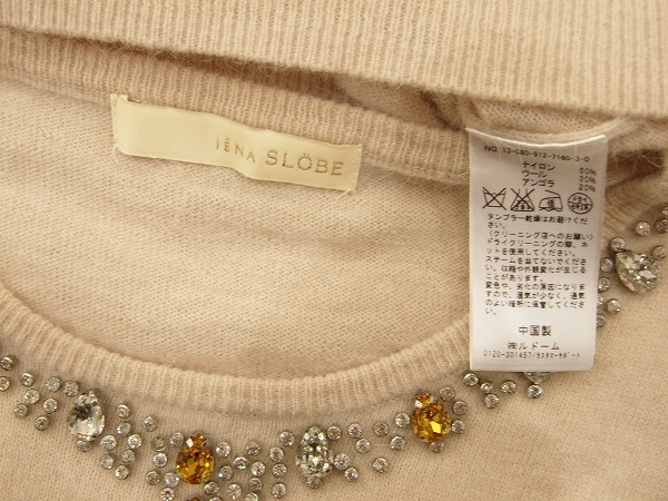 U美品★スローブイエナ*IENA SLOBE★ベージュ系★高級アンゴラ混★煌めきたっぷりストーン★華やかなニットセーター