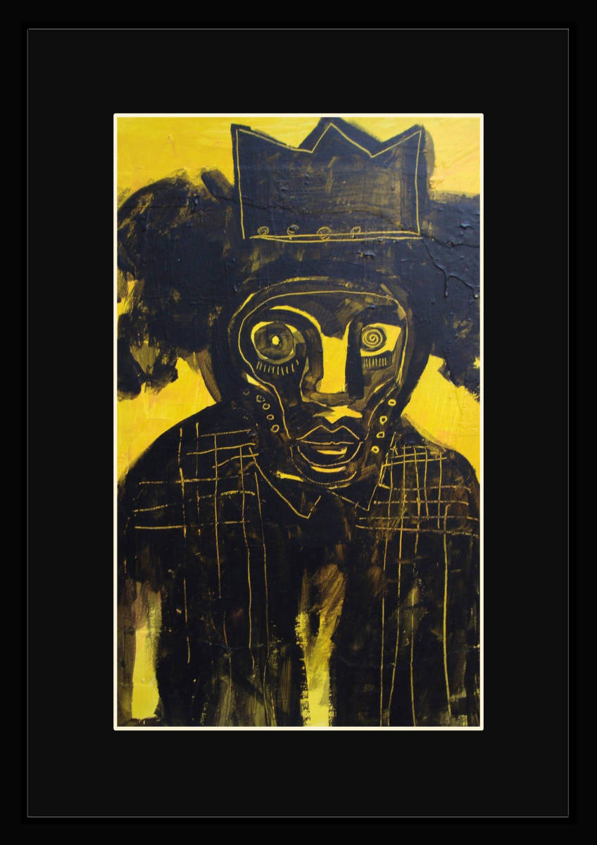 FB06B-ジャン=ミシェル・バスキア Basquiat 黒マット frame フレーム有 枠有 マット有 インテリア A4 置物 ポスター 模写