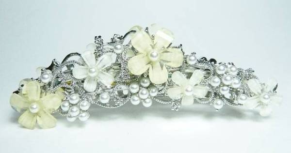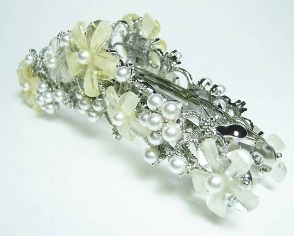 しっかりとまる BIGサイズ パール バナナクリップ&バレッタ ロジューム