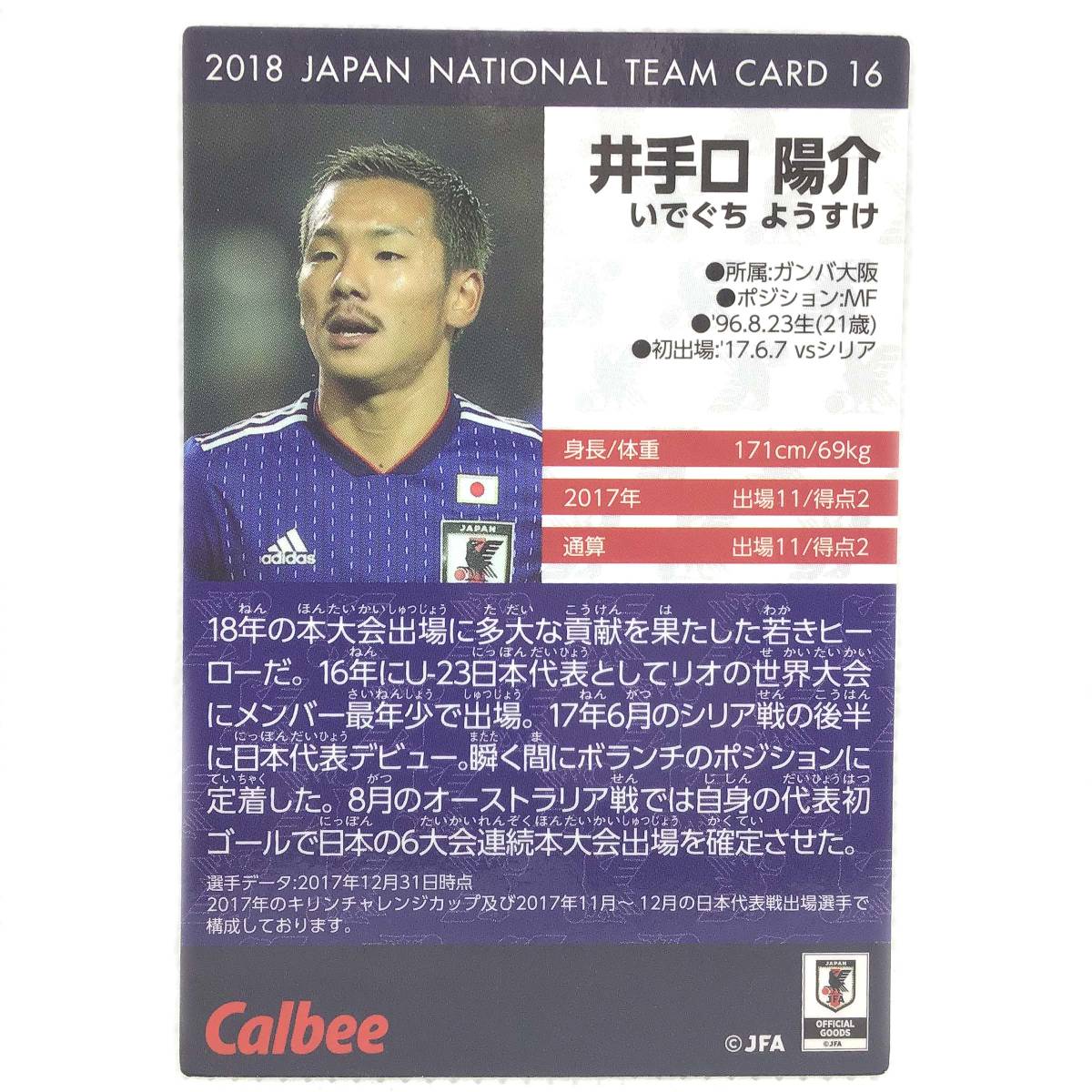 | CFP【当時もの】2018 カルビー サッカー JAPAN NATIONAL TEAM CARD No.16 井手口陽介 SAMURAI BLUE | |
