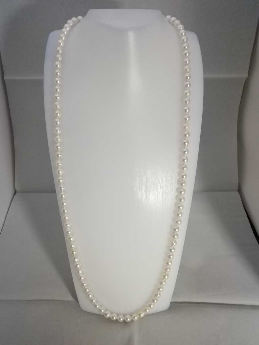 珠の大きさ7.5~8mm 長さ86cm クラスプはSV(シルバー)925のプッシュ挿し込み式